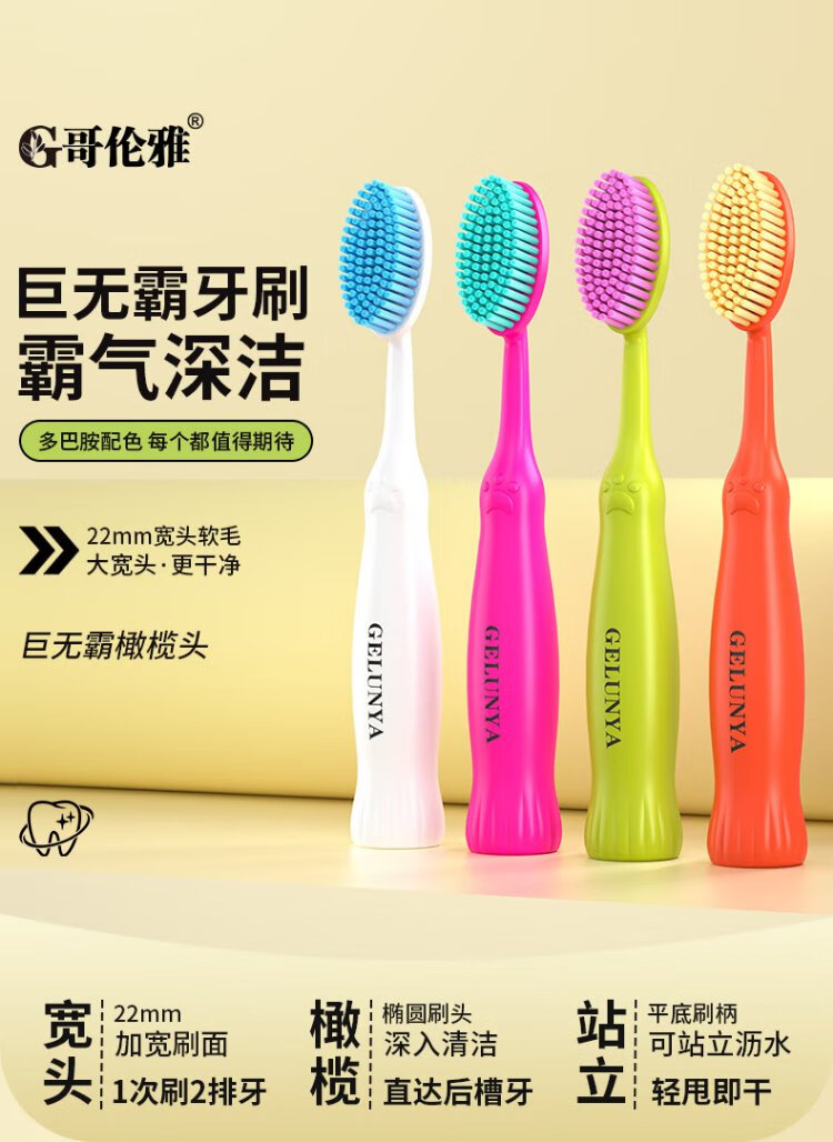 Colonia 4 Big Mac toothbrushes, wide head, fine bristle brush, medium soft bristles, gum protection, large head, high-end student home use