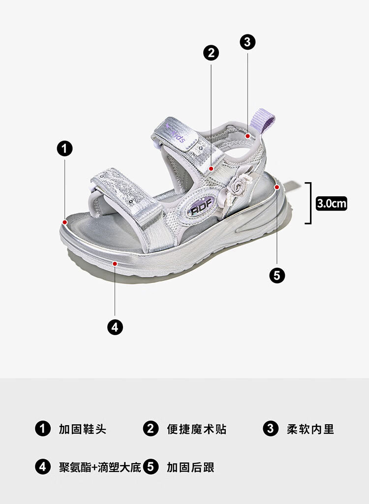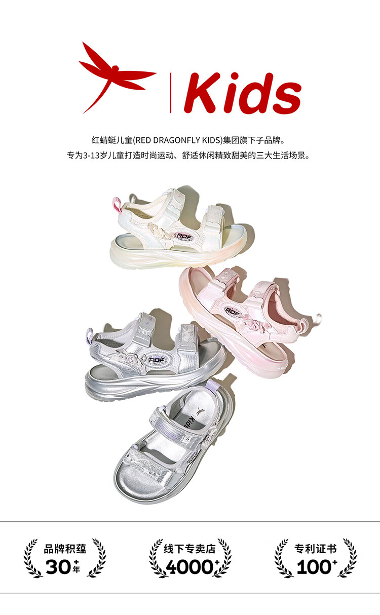 Red Dragonfly Girls Shoes 2026 Summer Children's Princess Shoes Soft Sole Breathable Beach Sandals Q62BL020 Beige 30