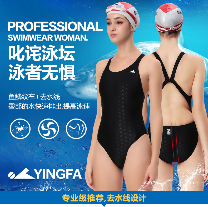YINGFA imitation sharkskin fabric professional racing one-piece with drainage line triangle one-piece swimsuit 921 black 3XL (1.70m/130Jin Jin equals 0.5kg)