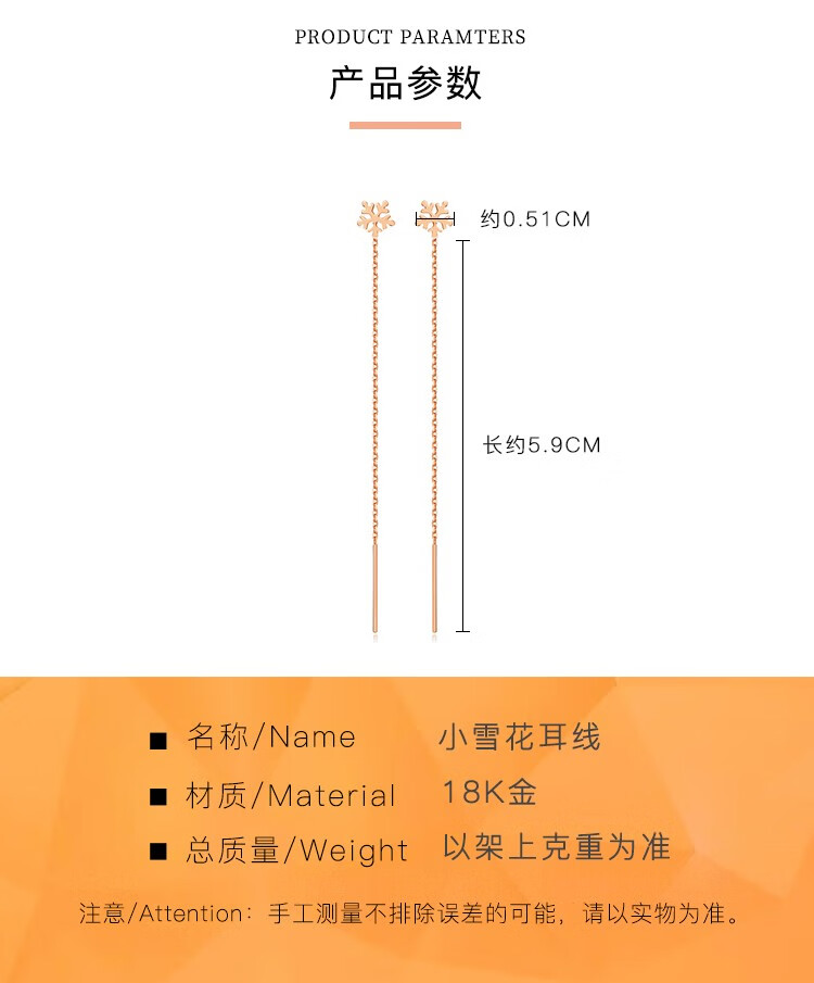 Ming brand jewelry 18K gold snowflake ear wire color gold rose gold fashion earrings gift for women CSH0232 pricing 18K gold ear wire about 0.41-0.45 grams