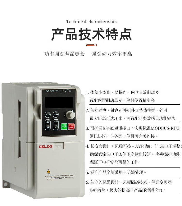 Delixi Electric (DELIXI) frequency converter EM60 three-phase 380V fan water pump speed control switch vector heavy load 3.7KW