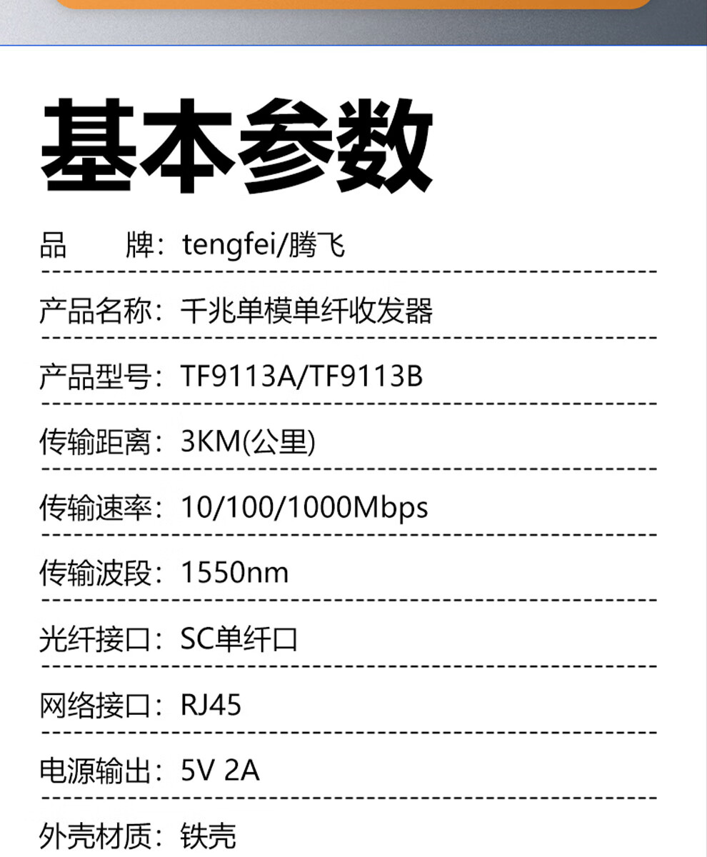 TENGFEI Gigabit single-mode single fiber optical fiber transceiver multi-mode dual-fiber photoelectric converter long-distance network transmitter SC interface Gigabit single-mode single fiber 3 kilometers (pair)