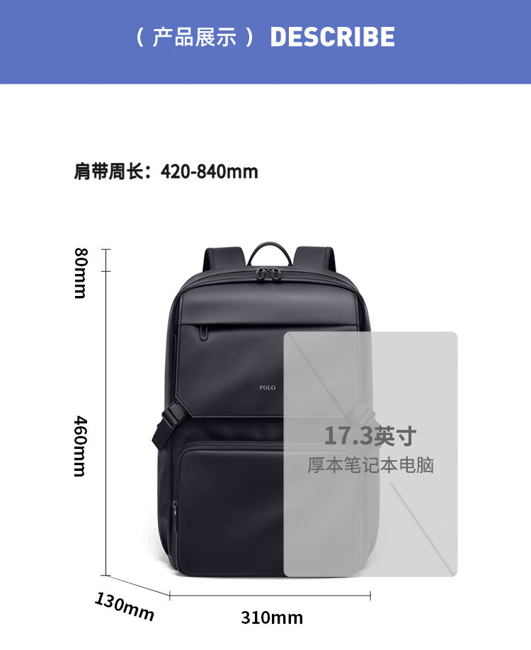POLO Backpack Men's Large Capacity Backpack Men's Travel Bag 16/17.3 Inch Computer Bag Men's Business Travel Bag