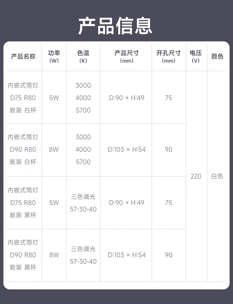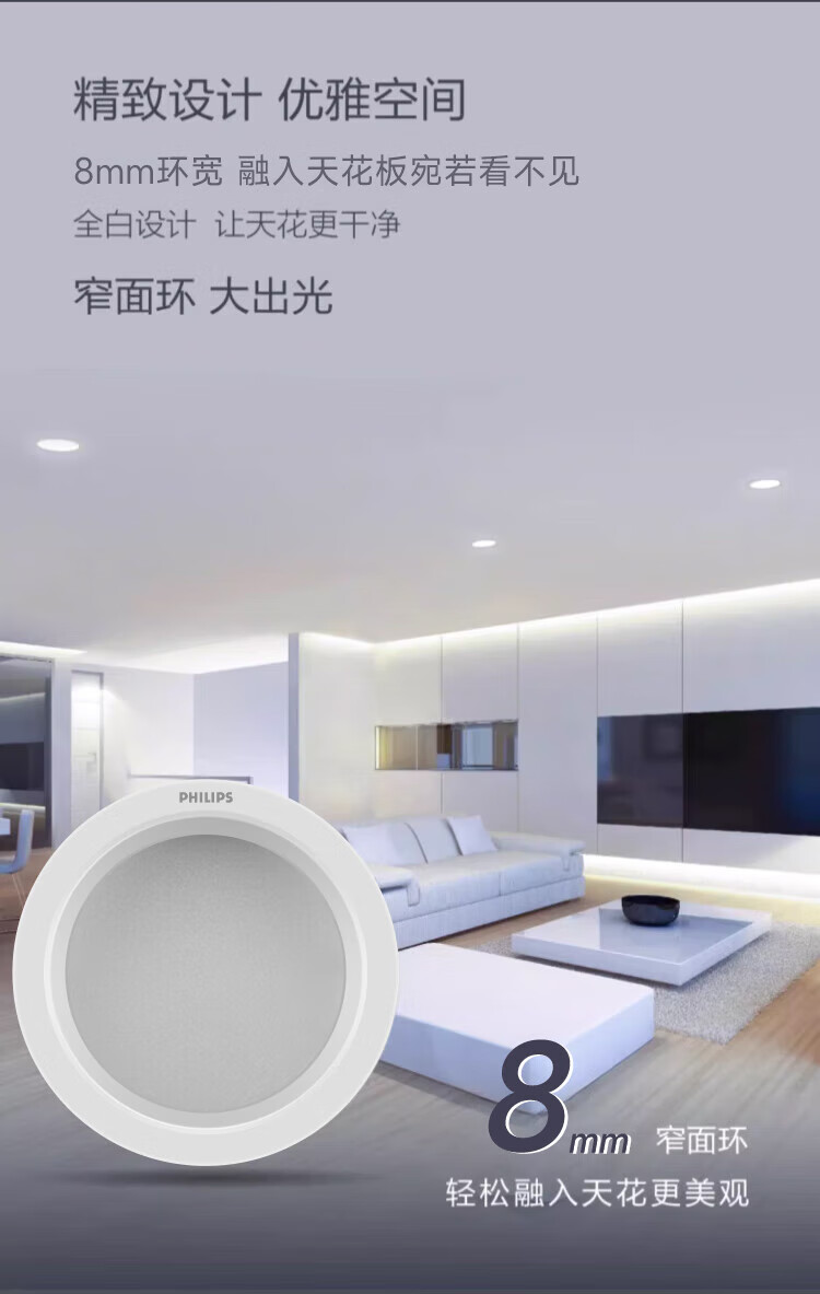 Philips downlight embedded led anti-glare narrow frame living room home three-color hole light ceiling aisle corridor ceiling light 8W medium light opening 85-95mm white cup