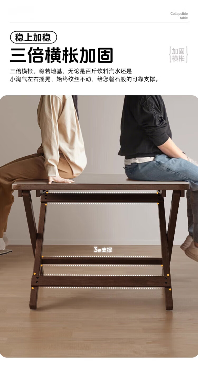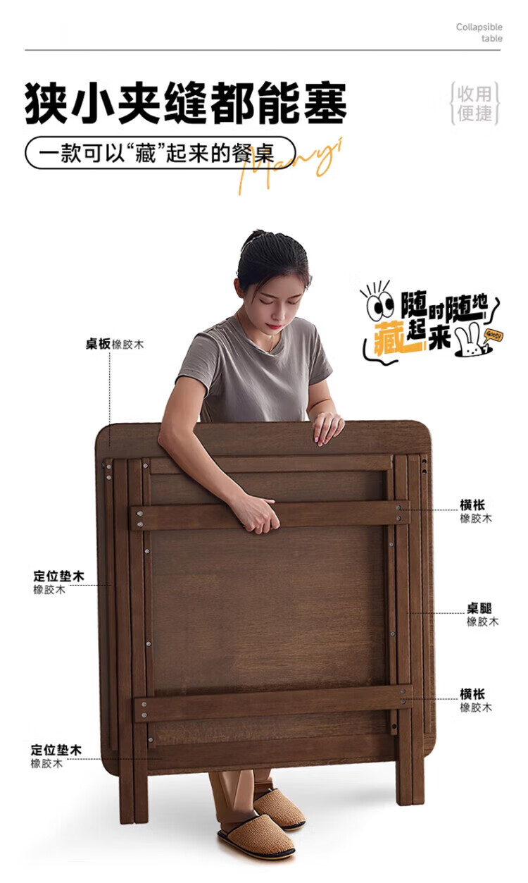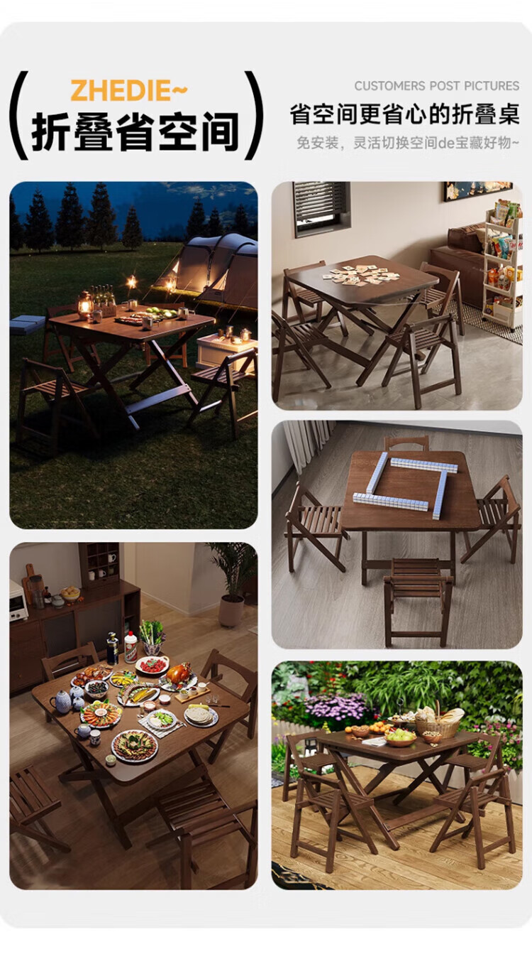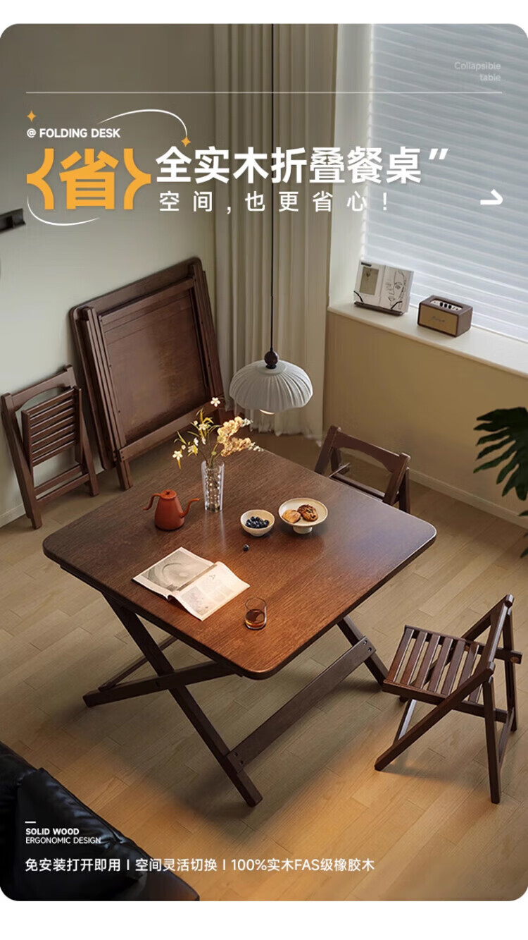 Jiayi solid wood folding dining table household simple small dining table small apartment study desk rental room outdoor portable square table