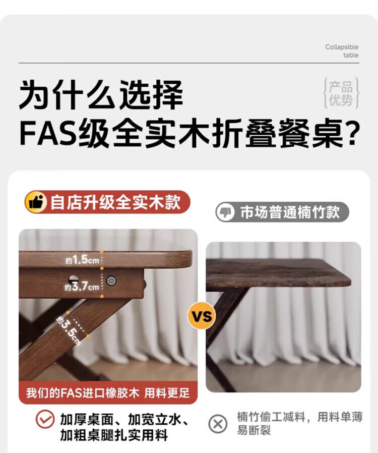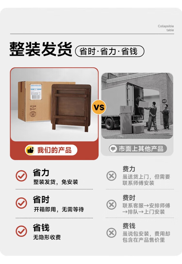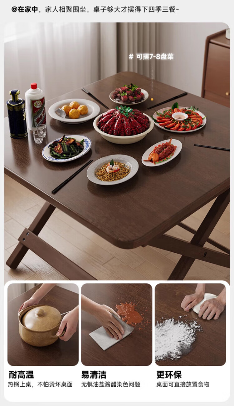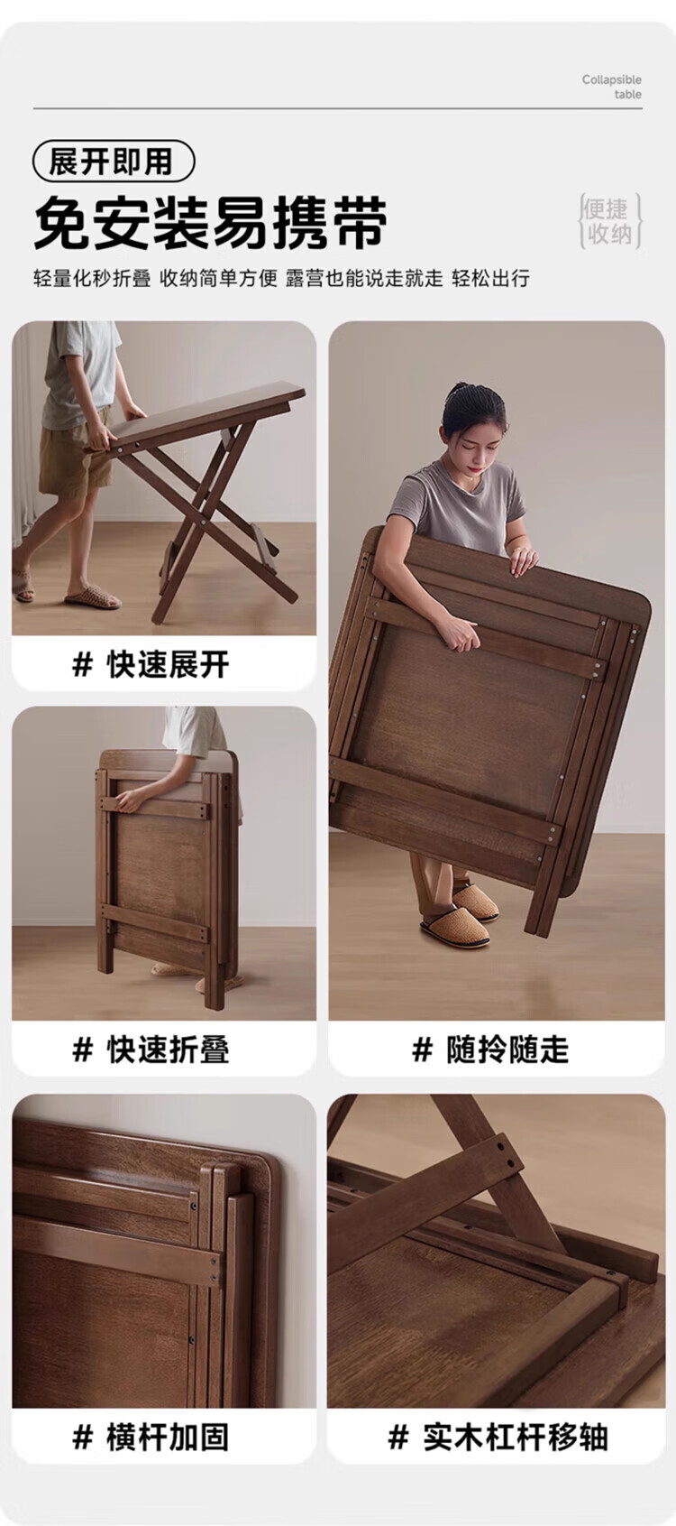 Jiayi solid wood folding dining table household simple small dining table small apartment study desk rental room outdoor portable square table