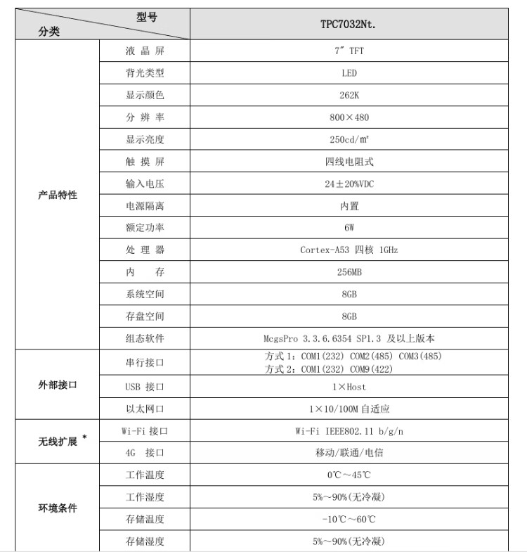 Kunlun Tongtai MCGS industrial touch screen 7-inch TPC7032Nt-WiFi/485/232 with network port remote Internet of things industrial control smart touch screen