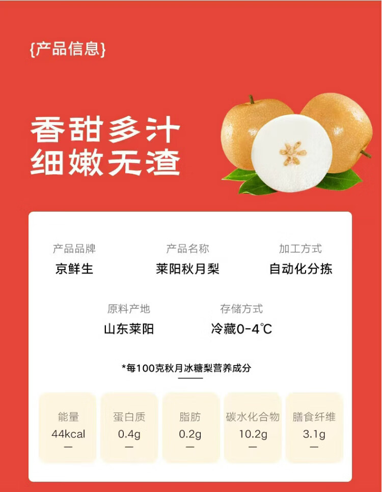 Jingxiansheng Shandong Yantai Laiyang Qiuyue Pear Net weight 4Jin Jin is equal to 0.5kg Single fruit 200g+ Fresh fruit Straight from the source