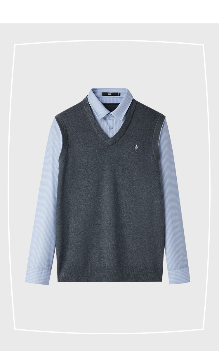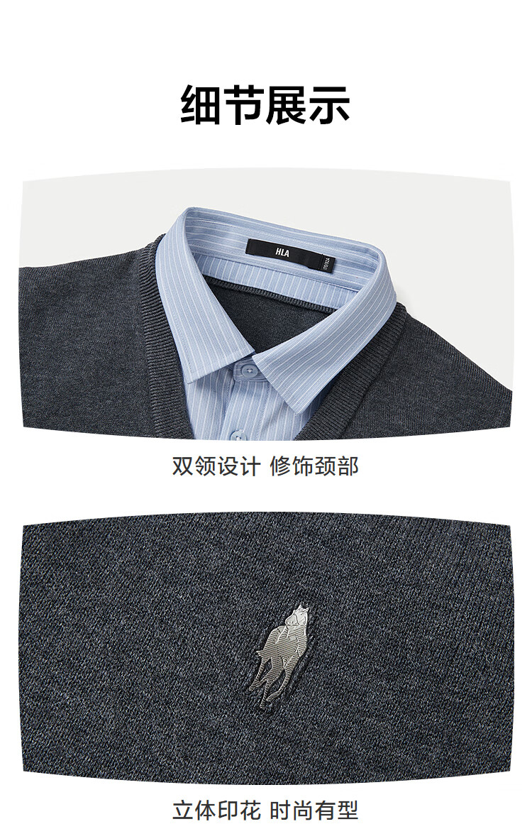 HLA Heilan House sweater men's core-spun yarn fake two-piece warm printed sweater winter for men