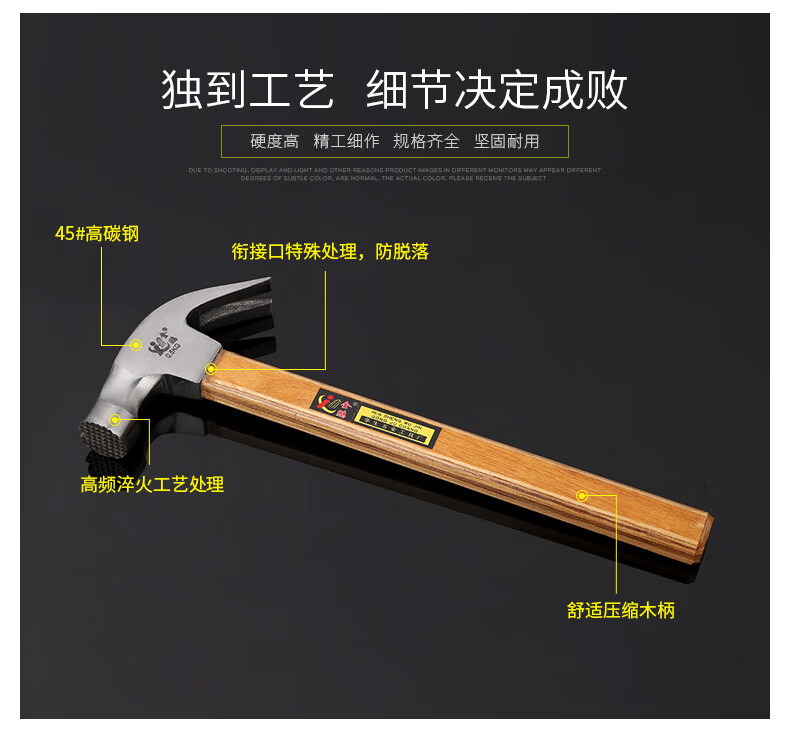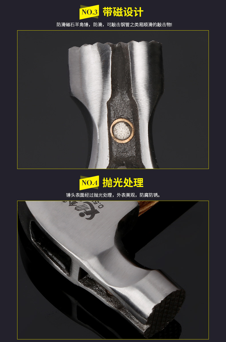 Yue Changsheng nail hammer slide magnetic claw hammer wooden well square carpentry hammer iron hammer hammer 0.5kg total length 410mm