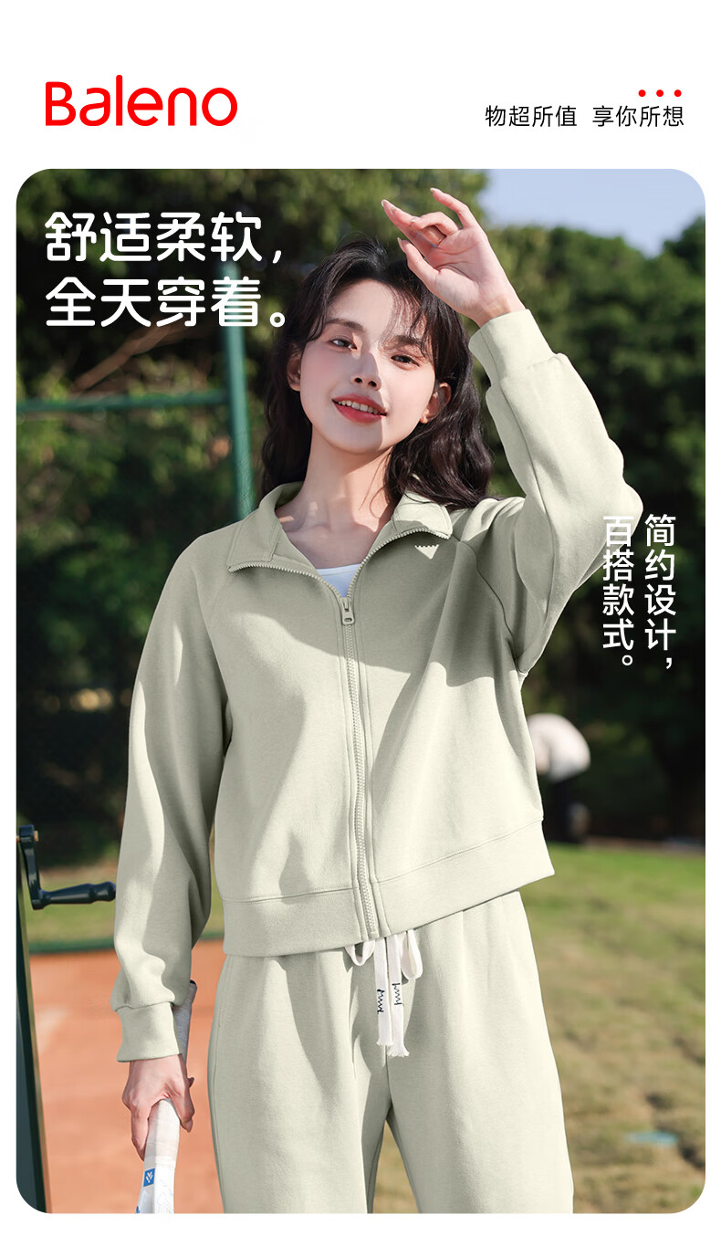 Baleno sports and leisure suits for women 2025 autumn and winter new temperament age-reducing stand-up collar sweatshirt jacket wide-leg pants two-piece set