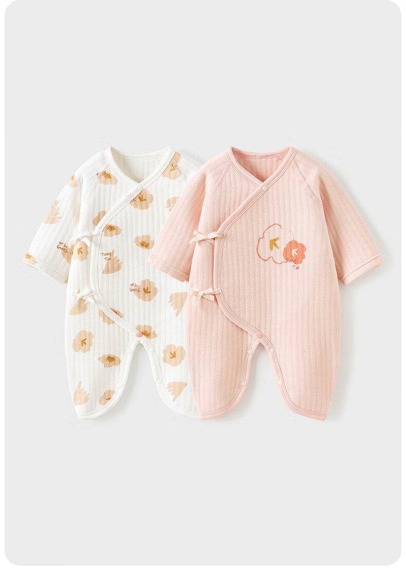 Tongtai (TONGTAI) baby jumpsuit autumn and winter pure cotton warm newborn clothes baby butterfly romper yellow 59cm