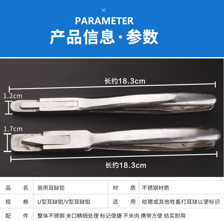 Stainless steel UV ear chip ear forceps for pigs pig ears v-type ear chip u-type ear chip pliers shipped after disinfection v-shaped ear chip pliers