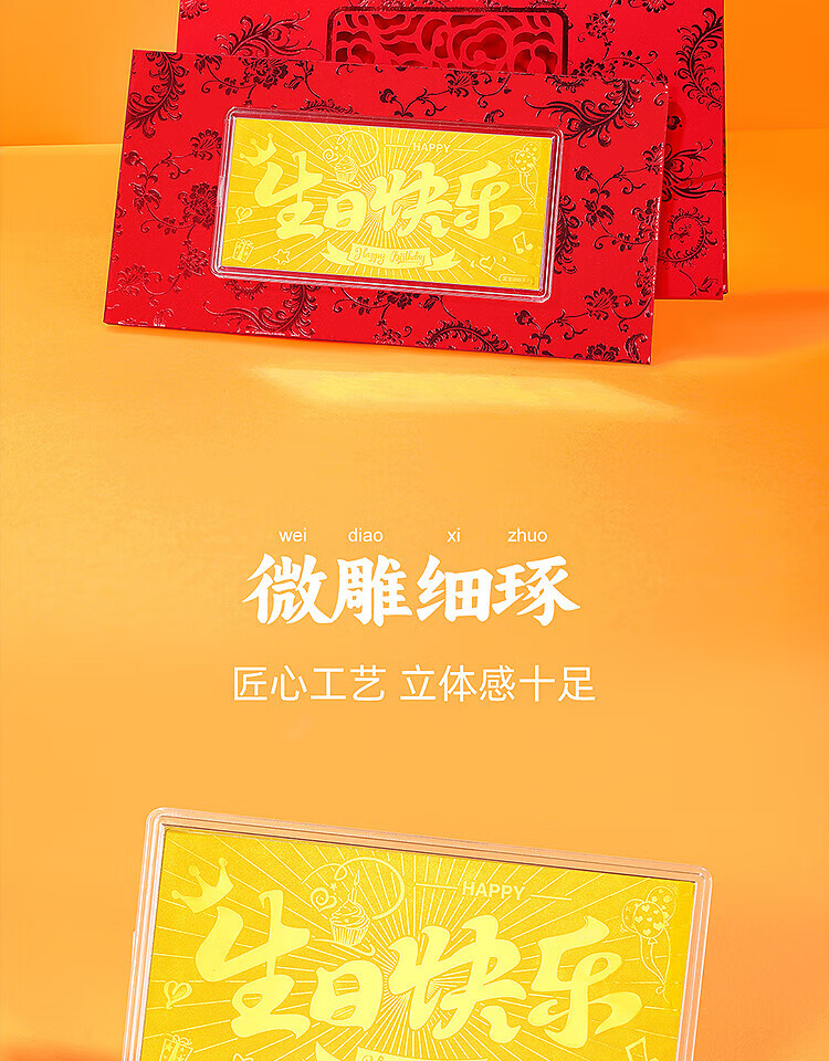Century Yuan Happy Birthday Gold Tablets Pure Gold Micro-engraved Gold Banknotes Birthday Investment Collection Save Money for Couples, Relatives and Friends 0.1g