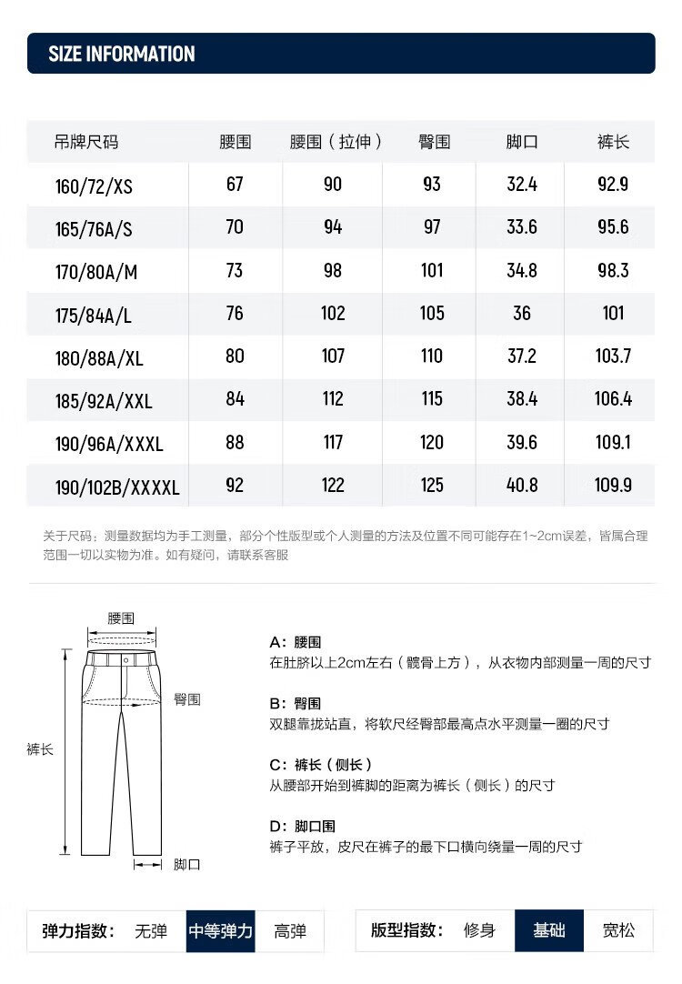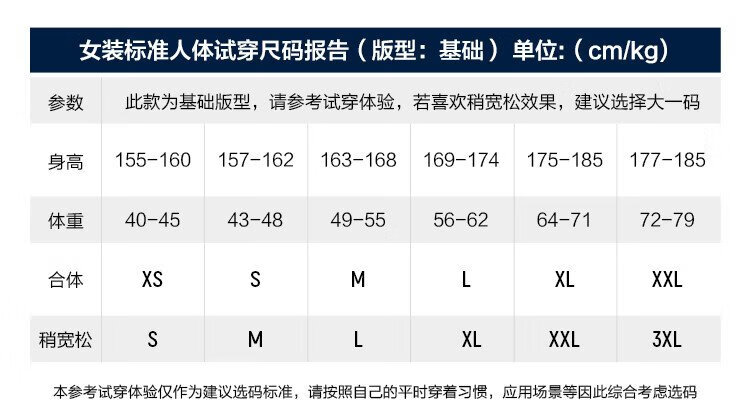 China (cm) 160-165/84-86 165-170 / 88-90 167-172 / 92-96 168-173 / 98-102 170-176 / 106-110