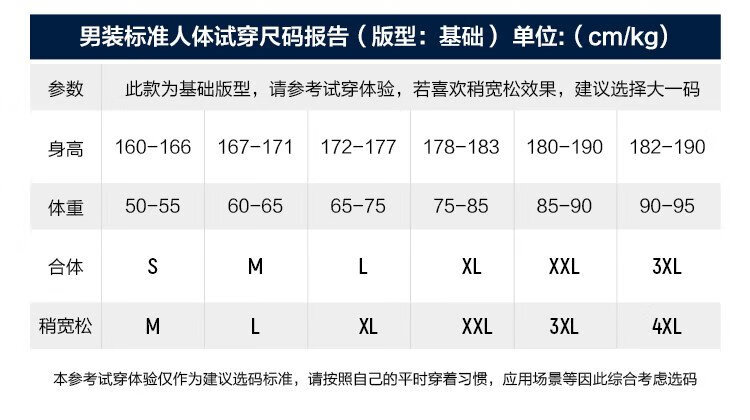 China (cm) 165 / 88-90 170 / 96-98 175 / 108-110 180 / 118-122 185 / 126-130