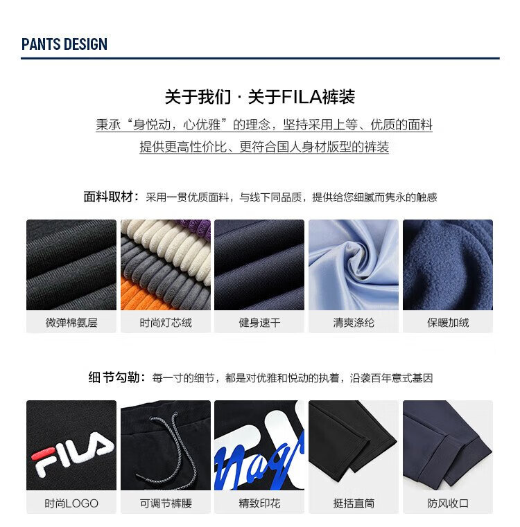 FILA official sports pants men's trousers autumn knitted straight sweatpants sports casual running pants