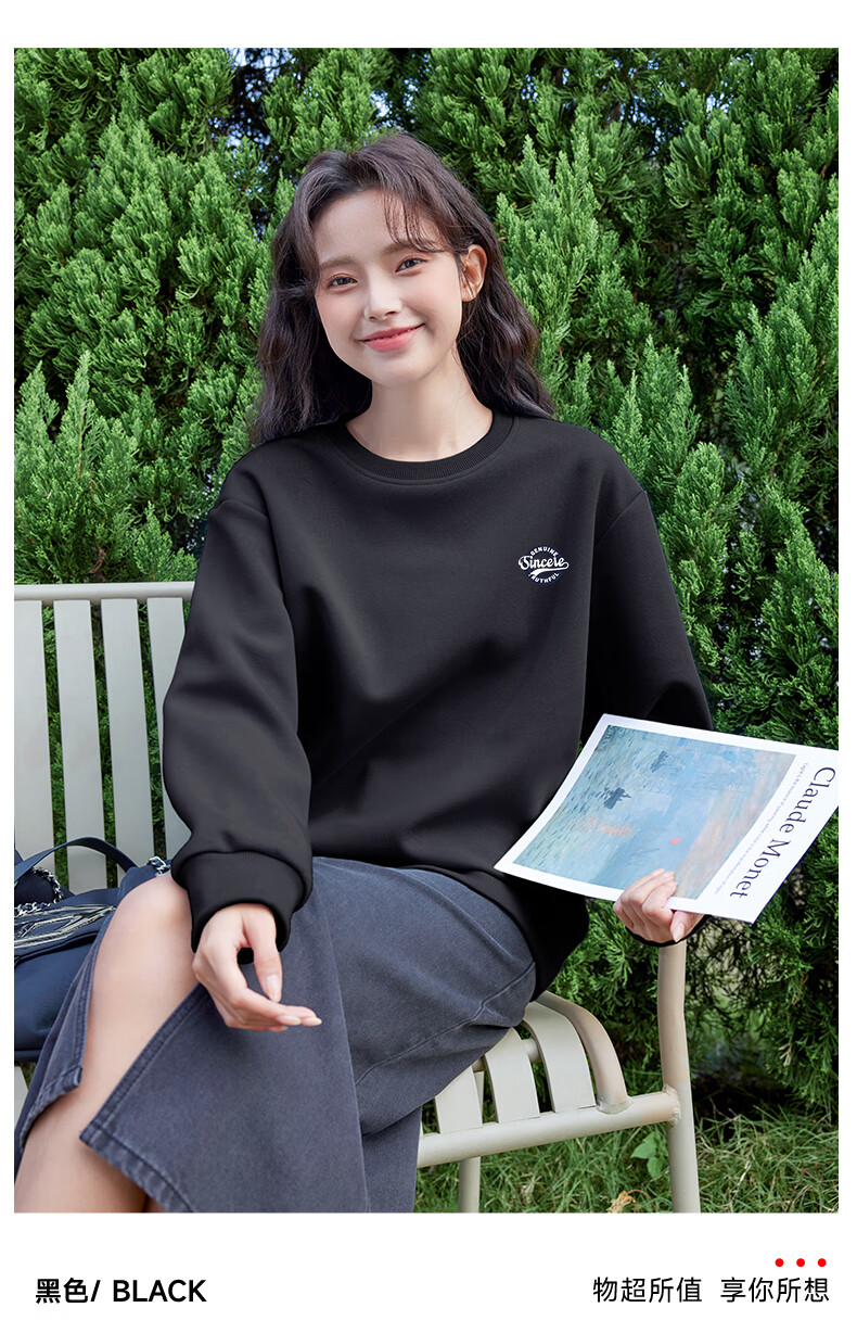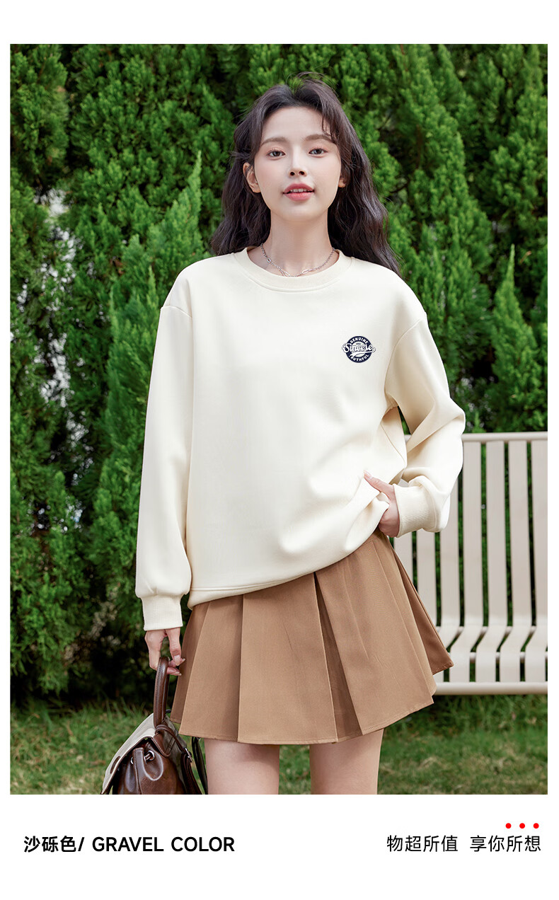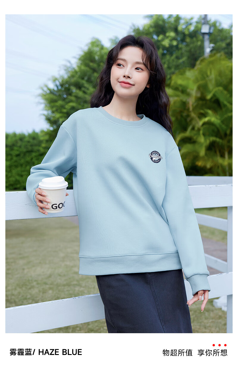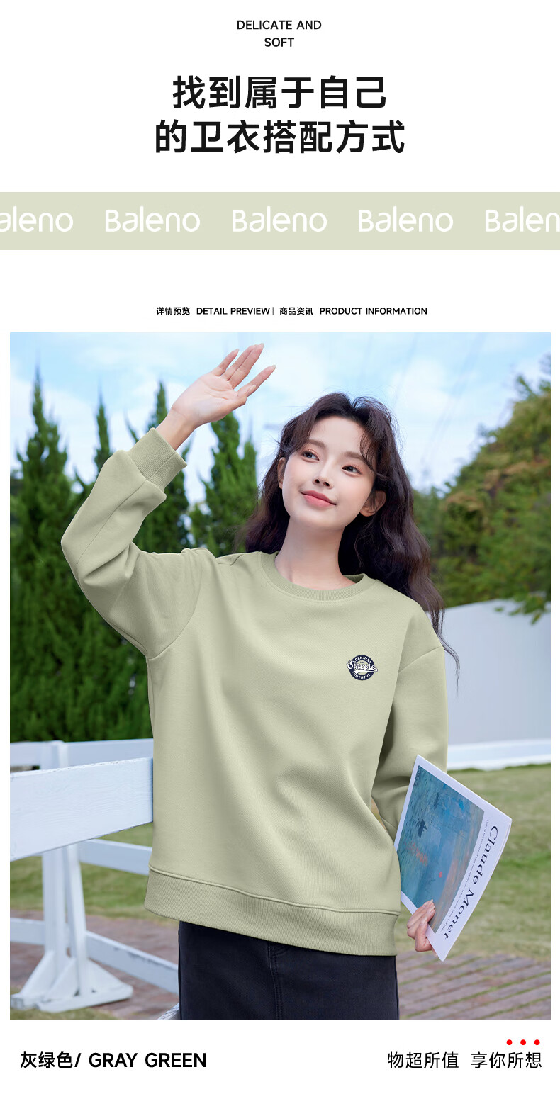 Baleno loose round neck sweatshirt for women 2025 new autumn trendy simple urban sports casual style long-sleeved top
