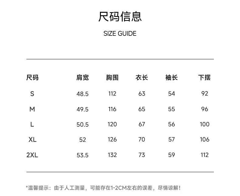 Size (cm) 42 44 46 48 50