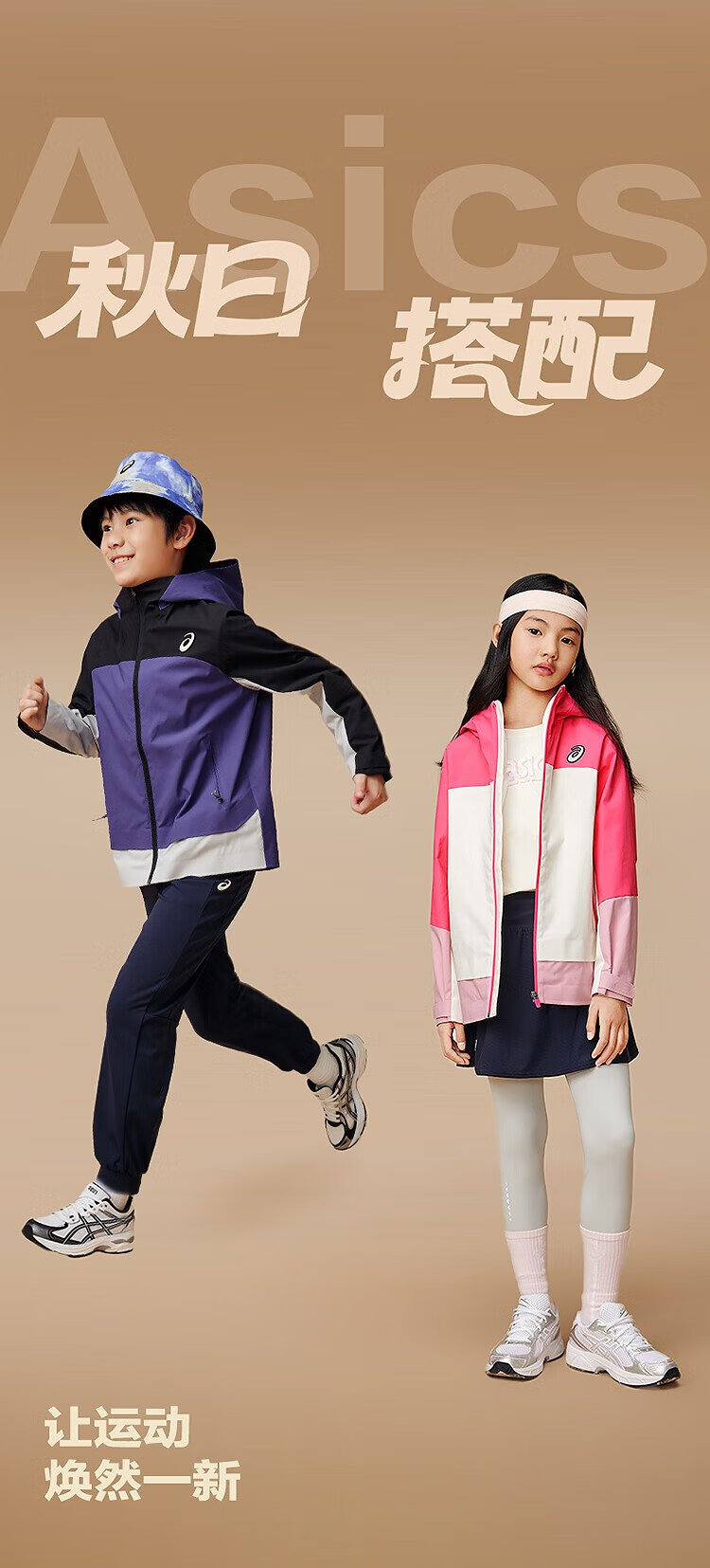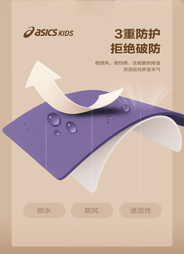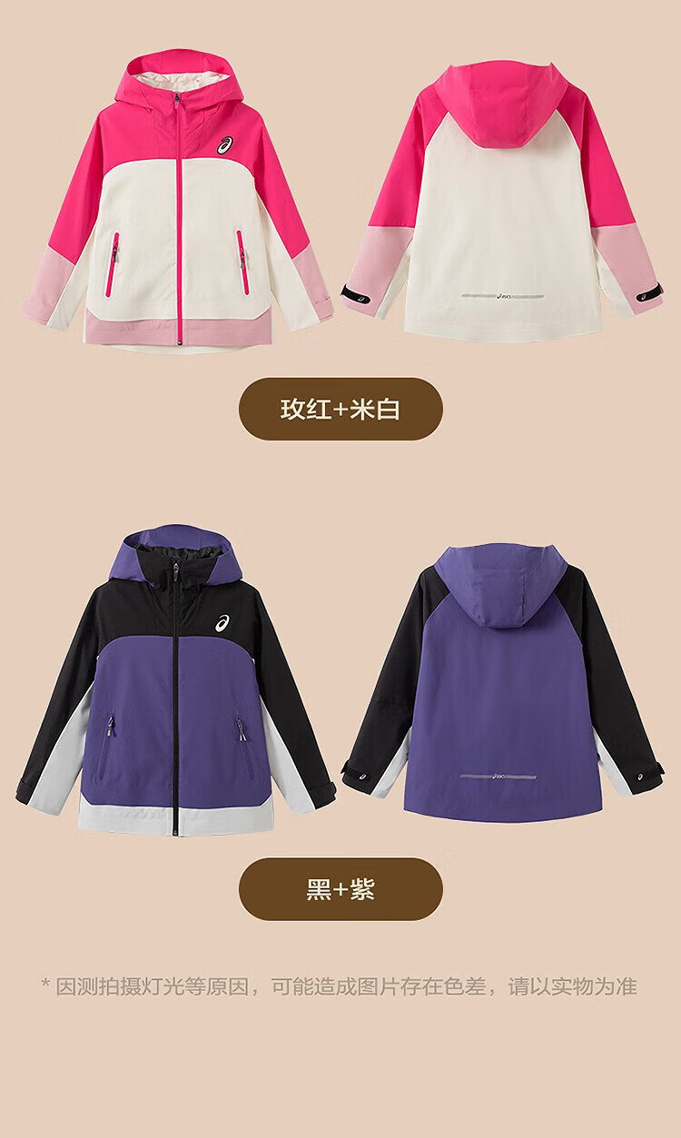 ASICS Children's Clothing 2025 Autumn Mid-sized and Large Children's Three-Proof Jacket Jacket Windproof and Breathable Color Block Jacket