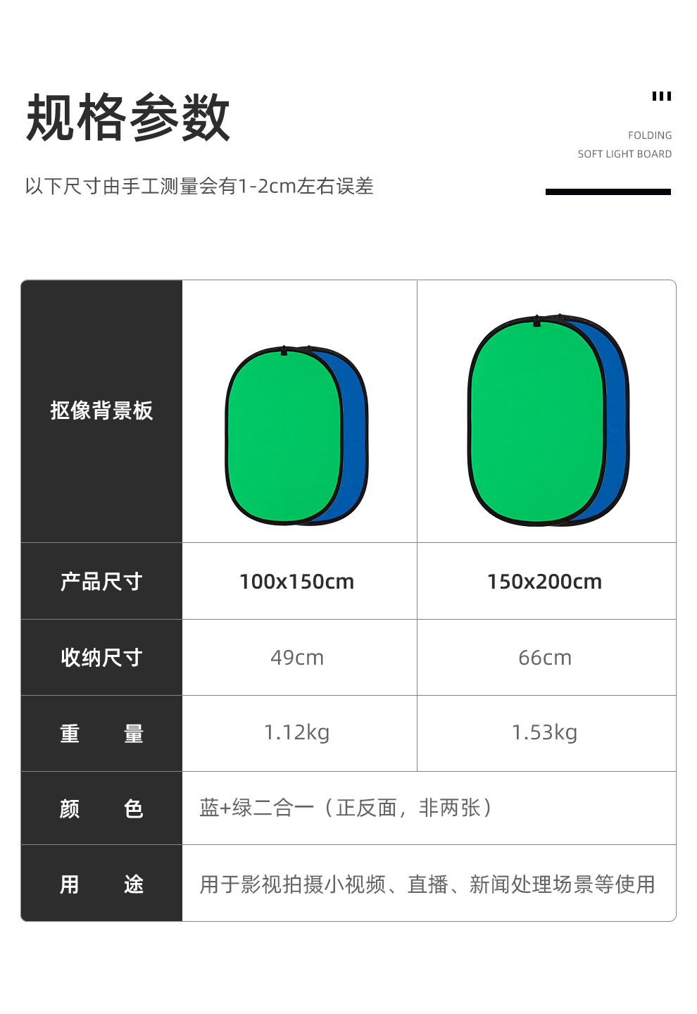 AMBITFUL 1.5*2m green screen blue double-sided keying board background green cloth 1*1.5m photo cloth foldable outdoor photography portable shooting Jingcang Sufa 1*1.5m blue and green double-sided keying board