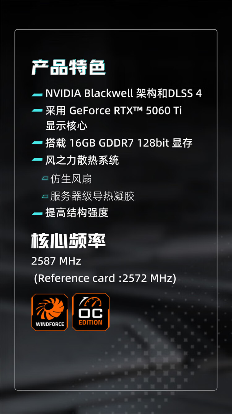 GIGABYTE 5060Ti 16G graphics card WindForce MAX OC GeForce RTX 5060 Ti WindForce MAX OC SFF 16G DLSS4 gaming e-sports graphics card
