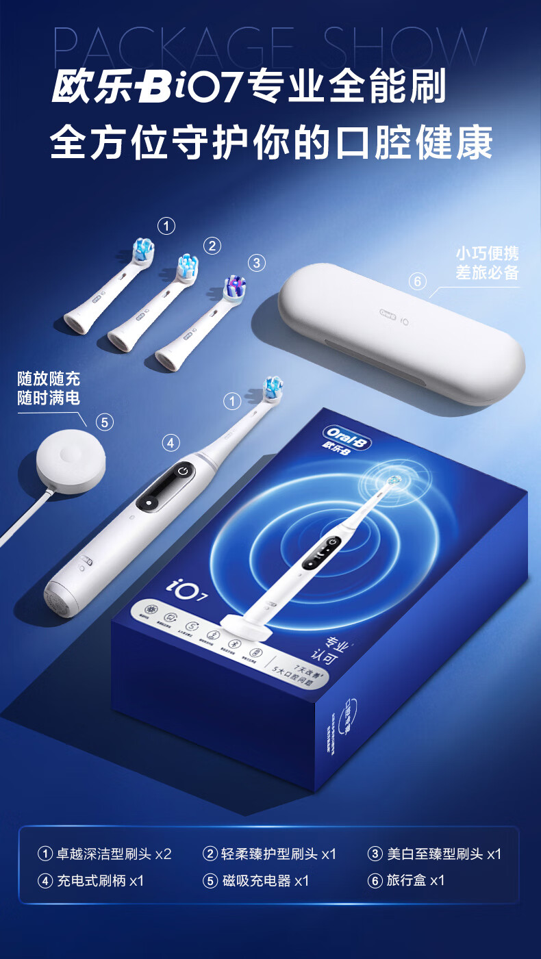 Oral-B Smart Electric Toothbrush iO7 Marble White Brush Head*4 Deep Cleaning State Subsidy OCC Best-Selling Couple Birthday Gift Business Gift
