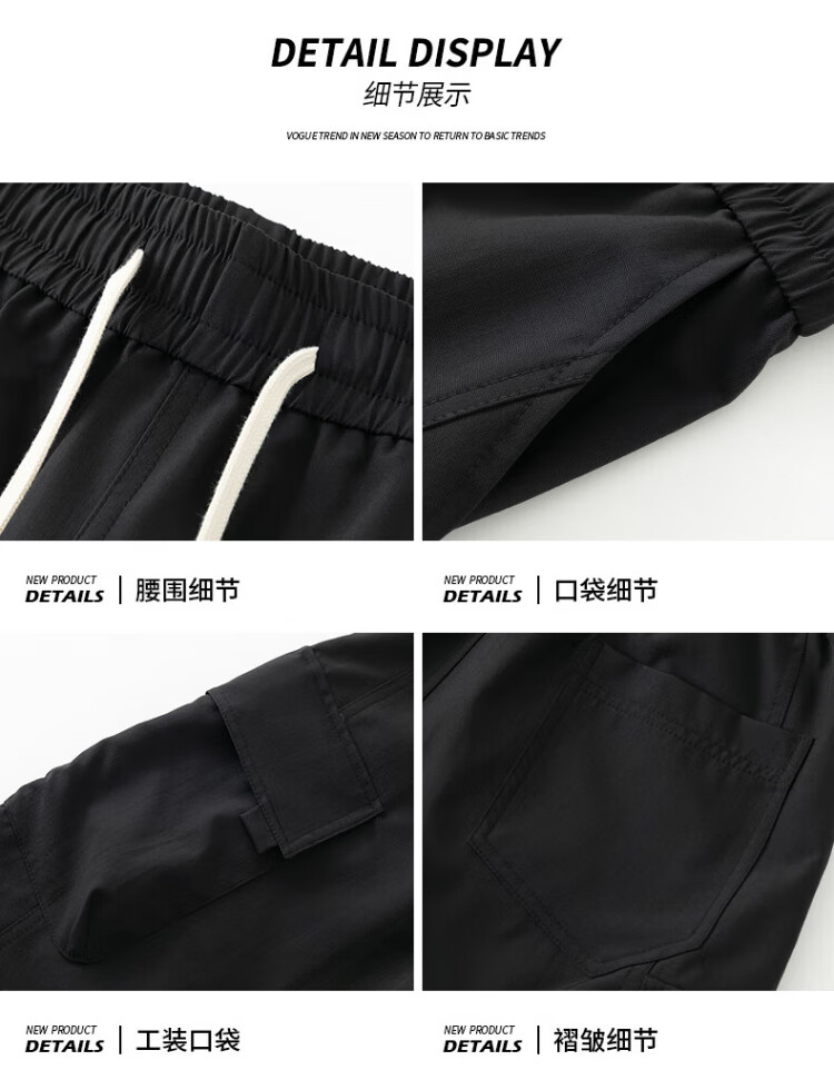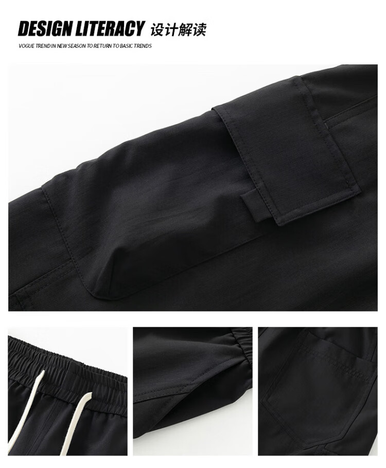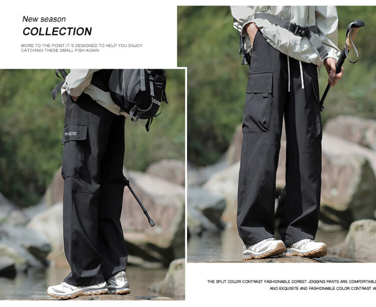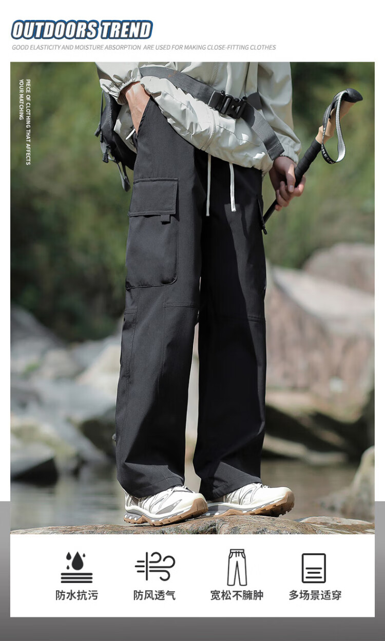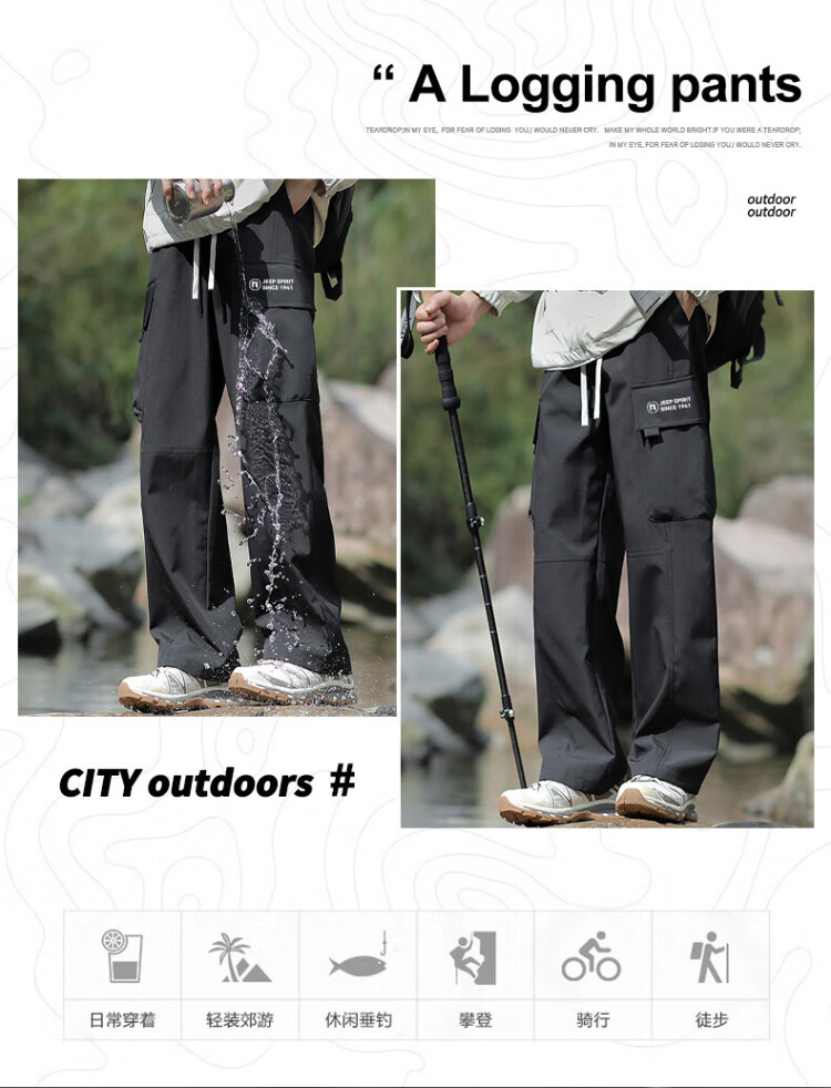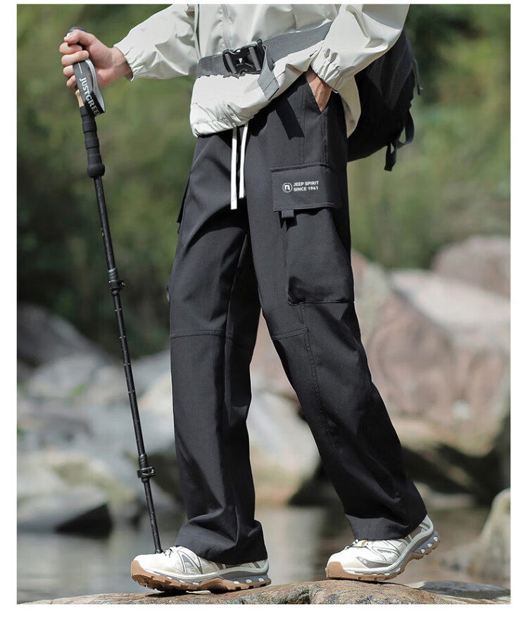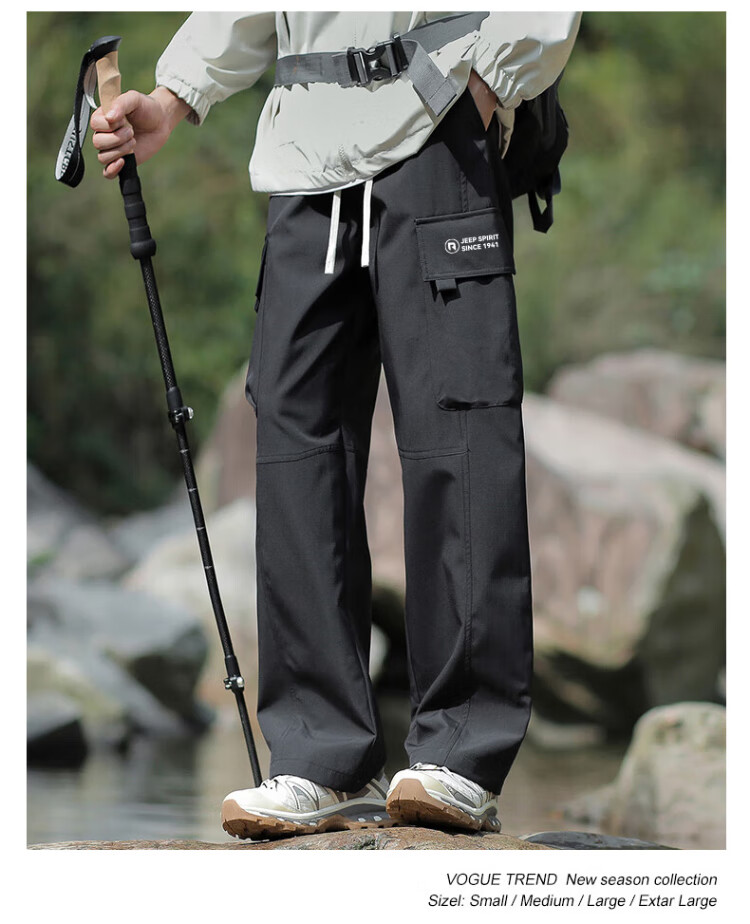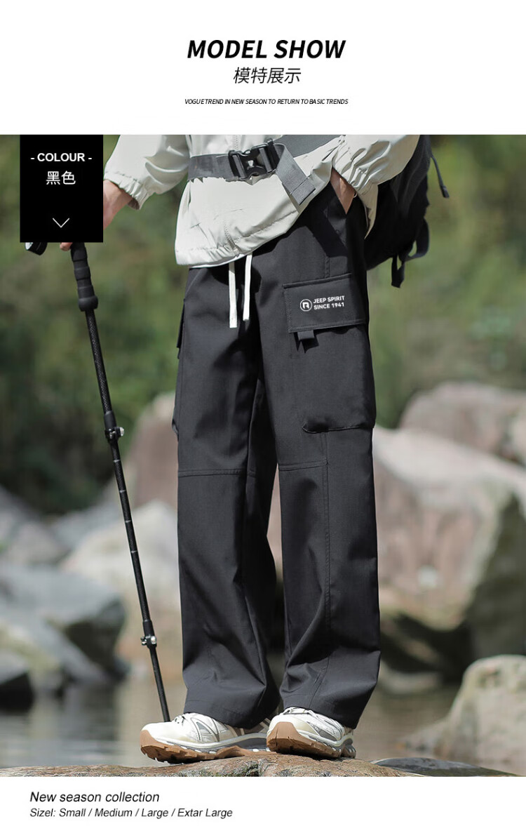 JEEP SPIRIT Jacket Pants Men's Autumn Fashion Loose Waterproof Overalls Men's Outdoor Sports Casual Pants Men Black 2XL