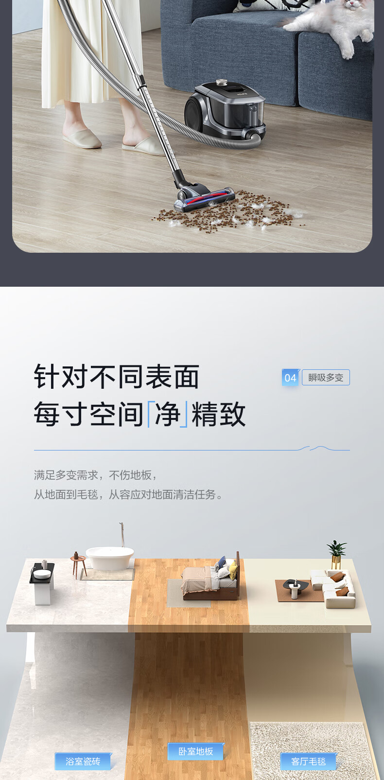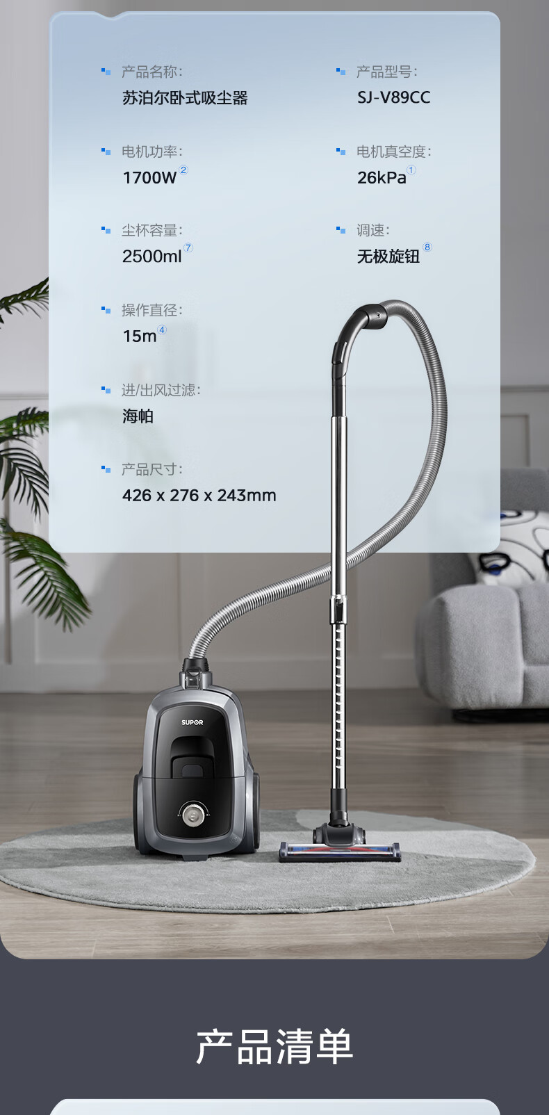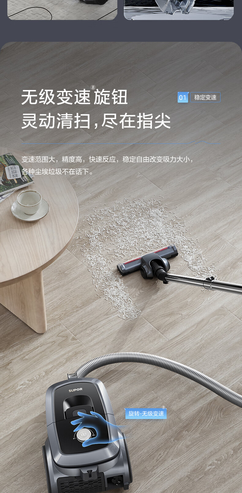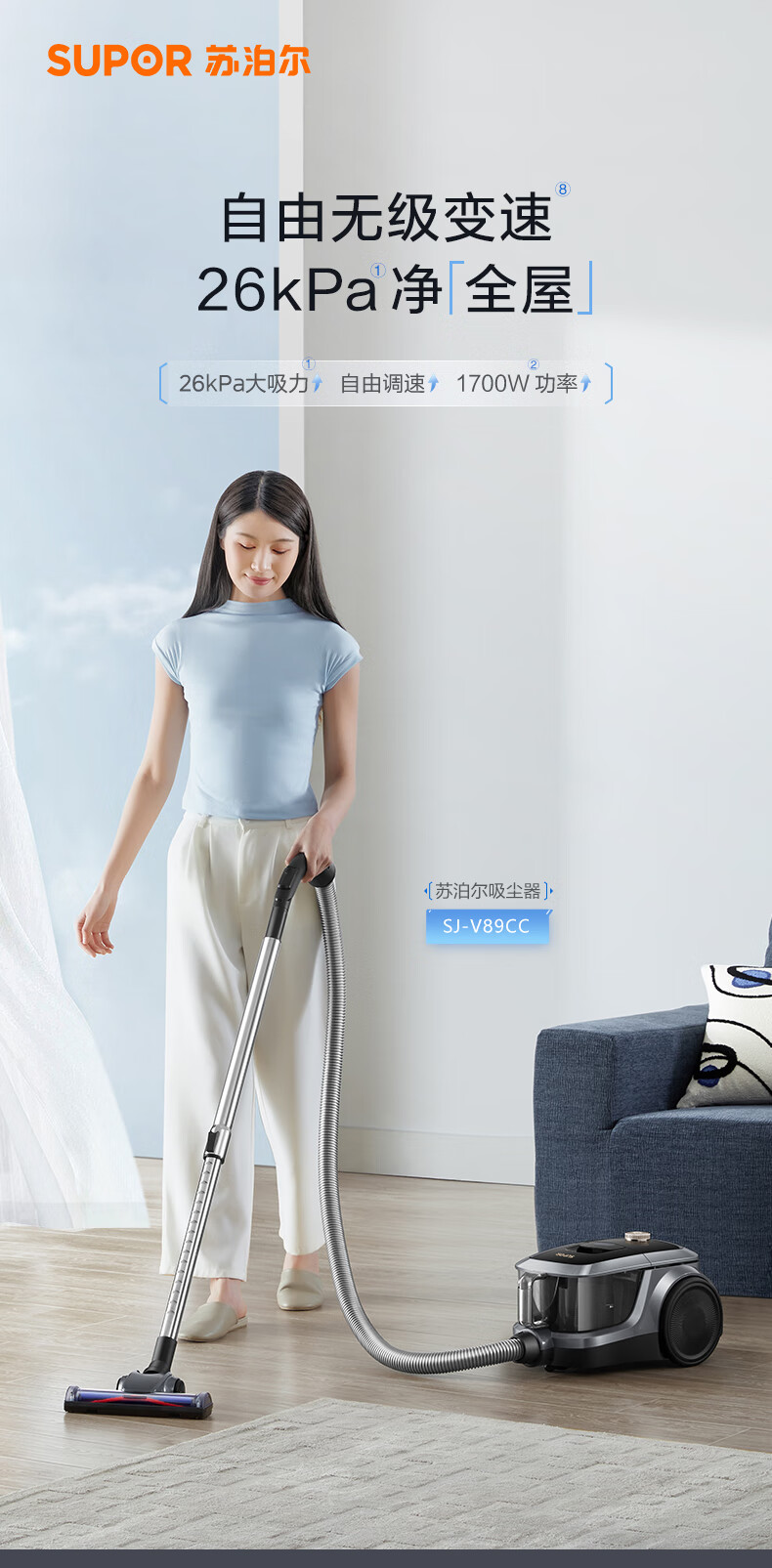 SUPOR horizontal vacuum cleaner household high-suction carpet cleaning high-power vacuum mite removal stepless speed adjustment one-click cord retraction SJ-V89CC New Year's housewarming gift
