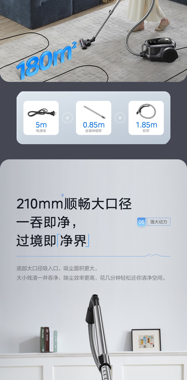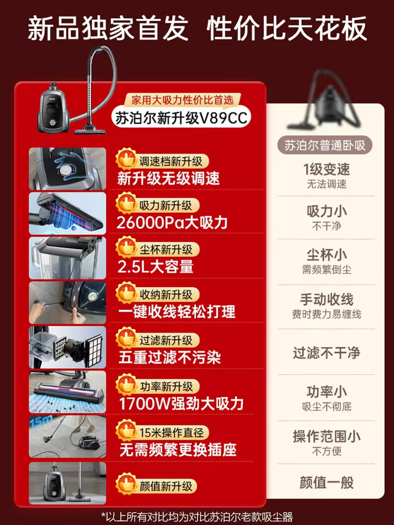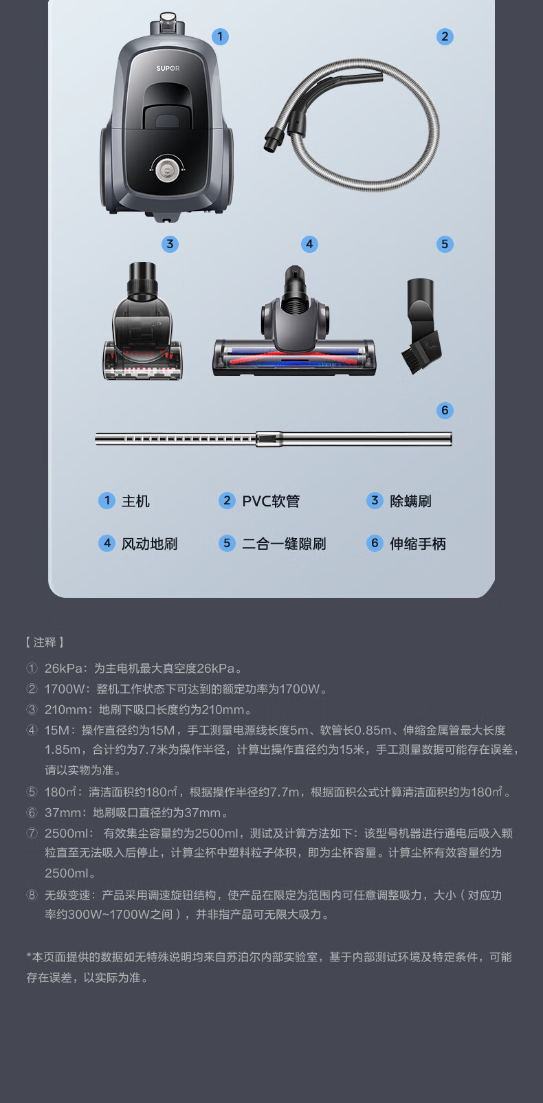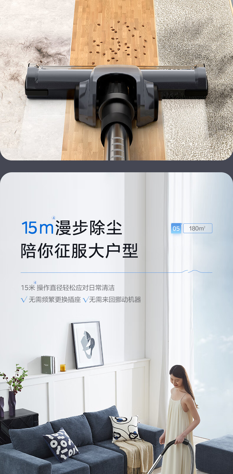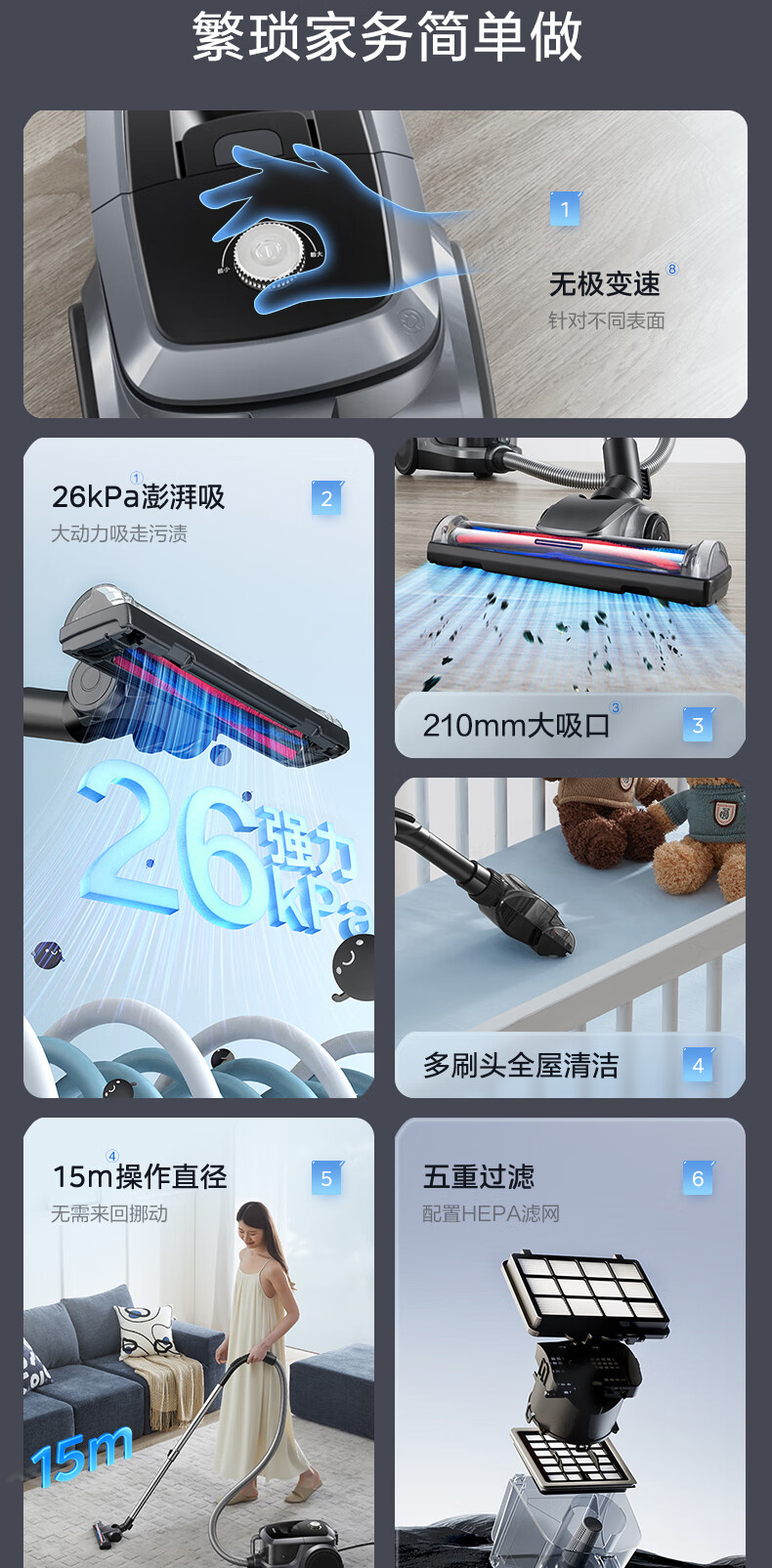 SUPOR horizontal vacuum cleaner household high-suction carpet cleaning high-power vacuum mite removal stepless speed adjustment one-click cord retraction SJ-V89CC New Year's housewarming gift