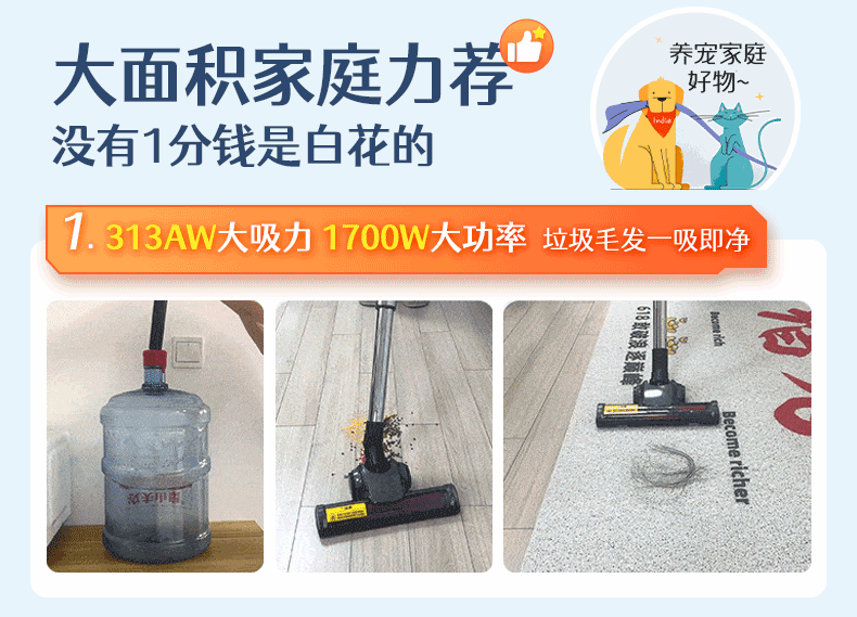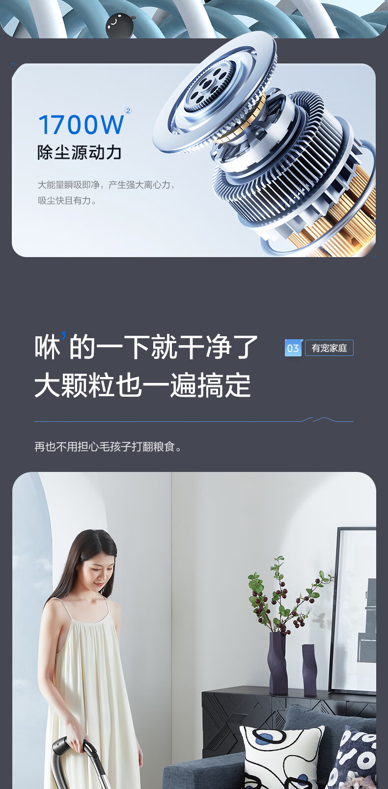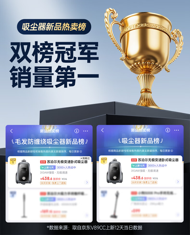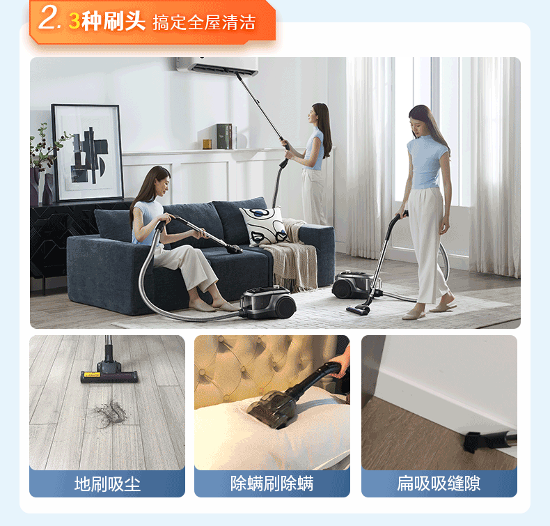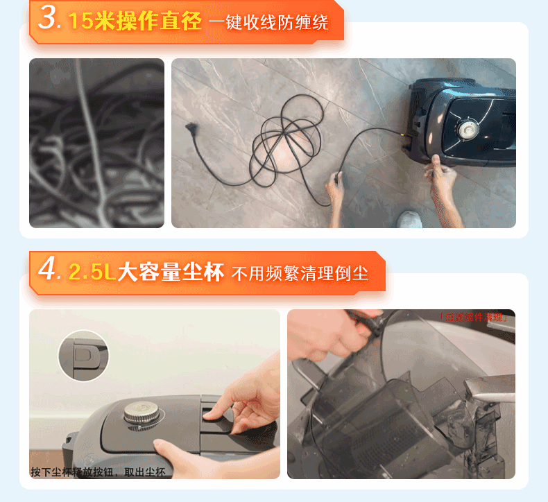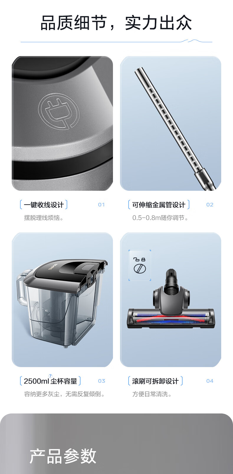 SUPOR horizontal vacuum cleaner household high-suction carpet cleaning high-power vacuum mite removal stepless speed adjustment one-click cord retraction SJ-V89CC New Year's housewarming gift
