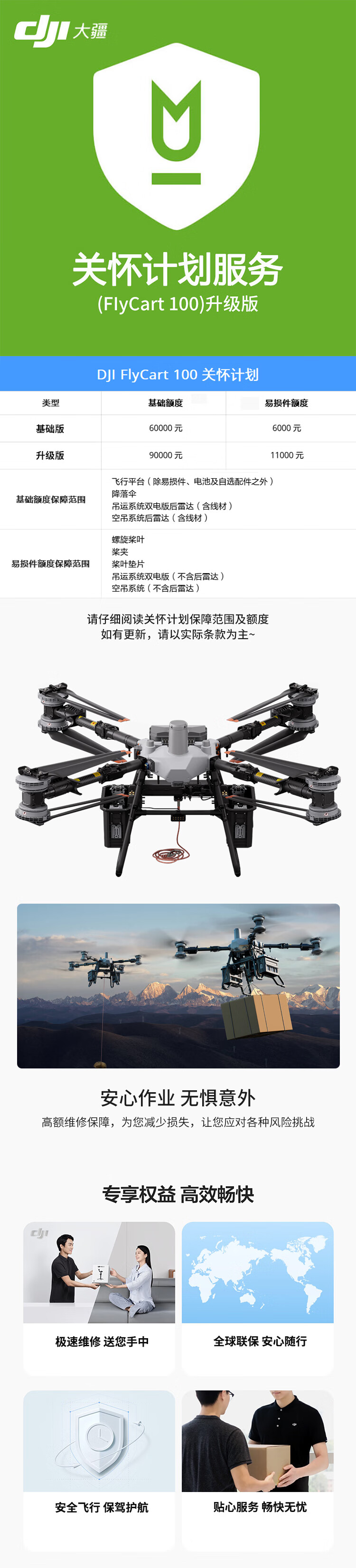 DJI Drone FlyCart100 Insurance Unlimited Free Repairs Within the Insured Amount FC100 Care Plan Upgraded Version 1 Year