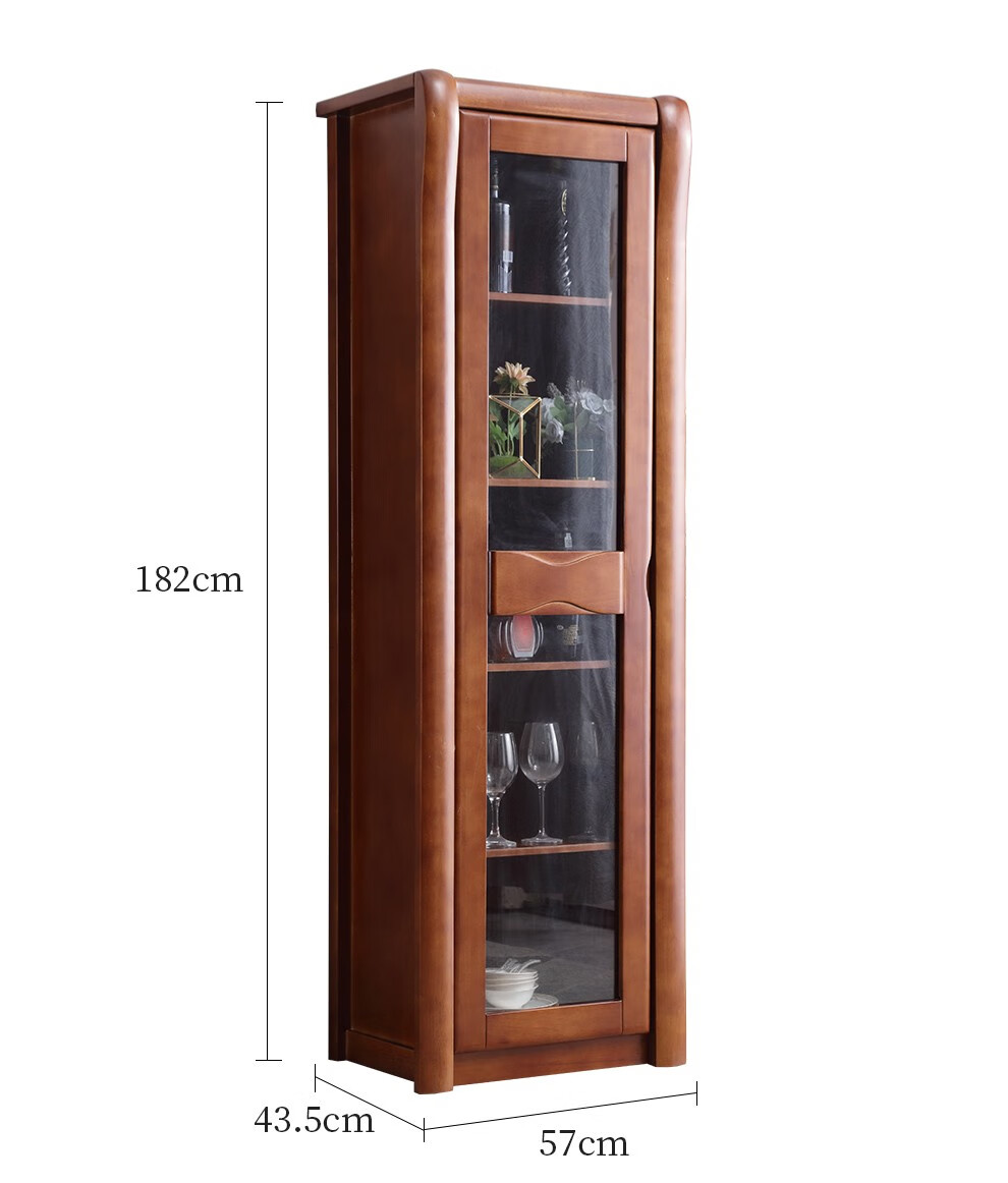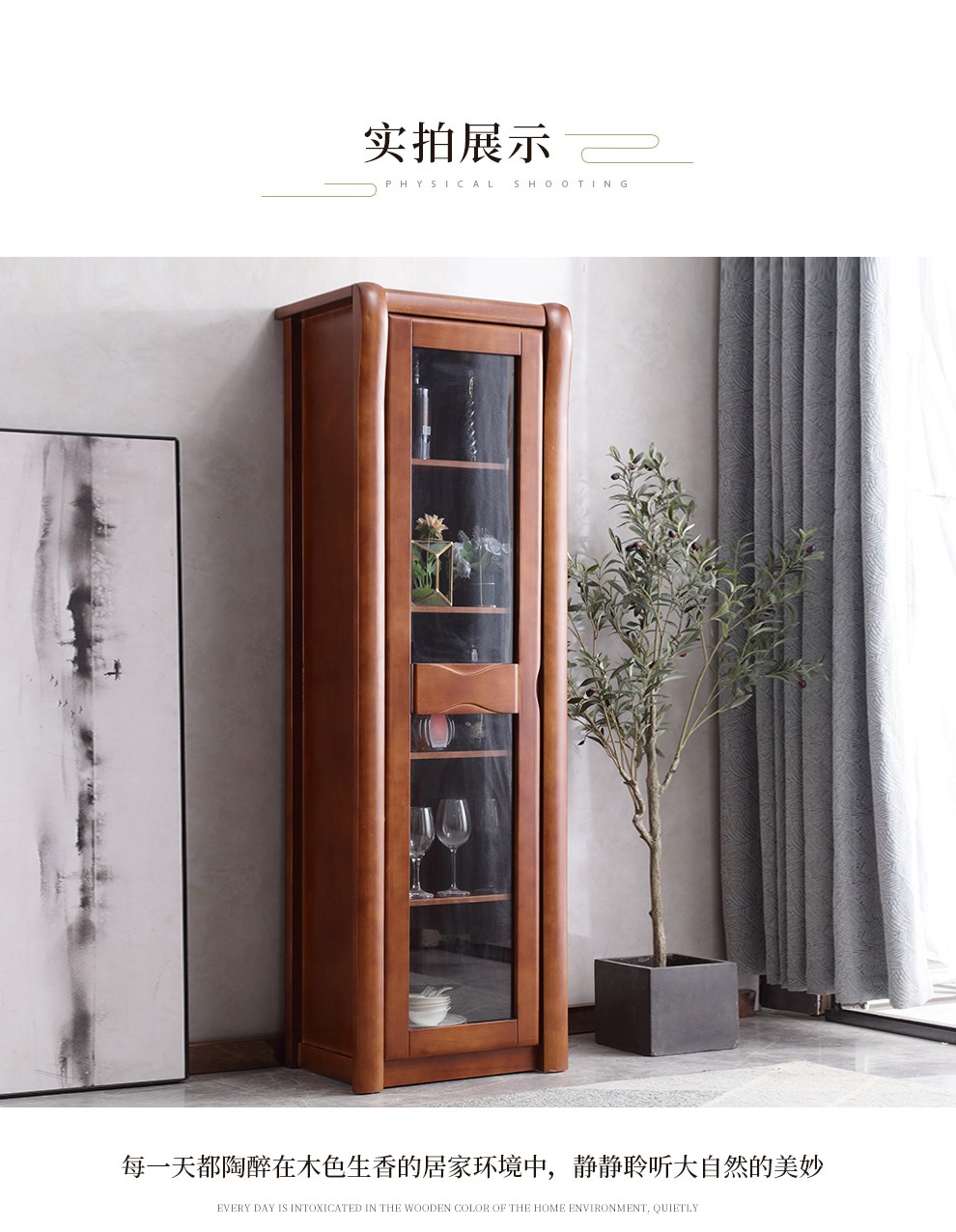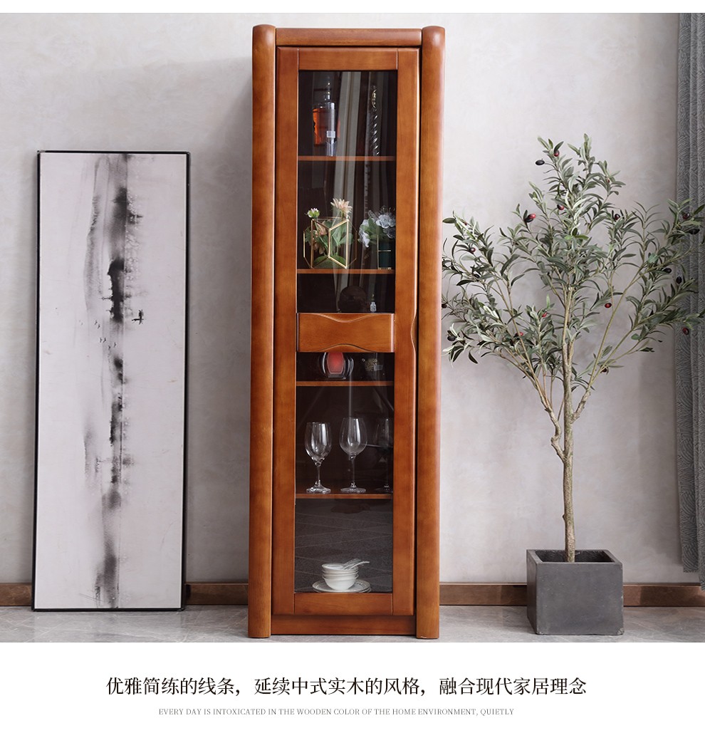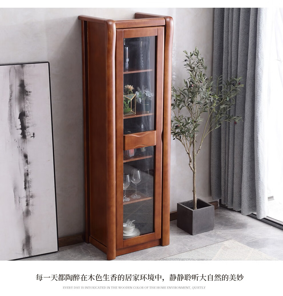 Chen Fei Furniture Chinese solid wood wine cabinet TV cabinet side cabinet single door narrow cabinet multi-functional glass small apartment living room storage cabinet walnut color