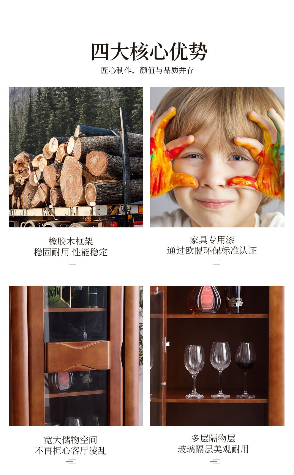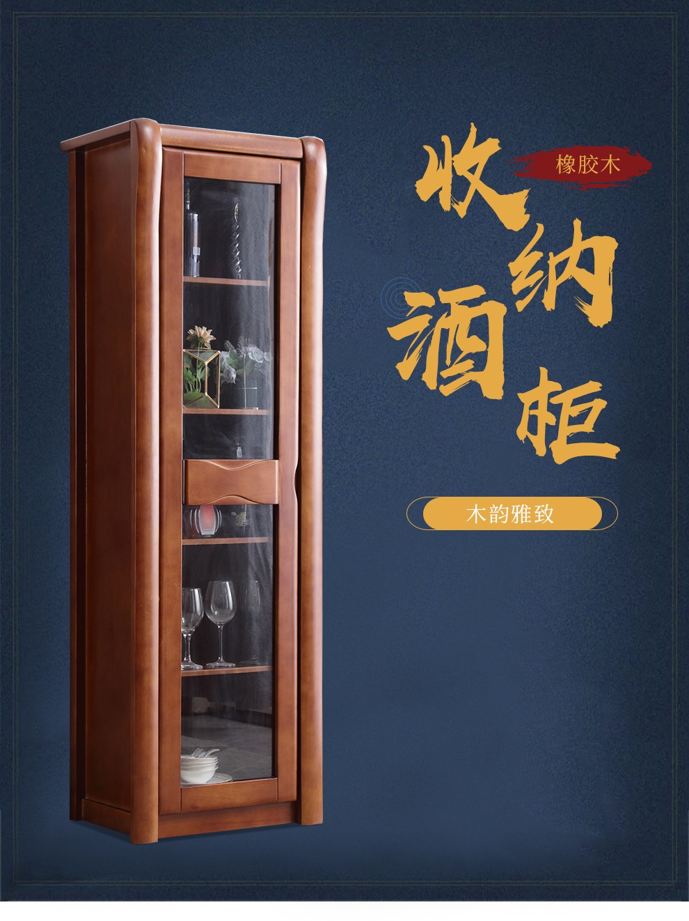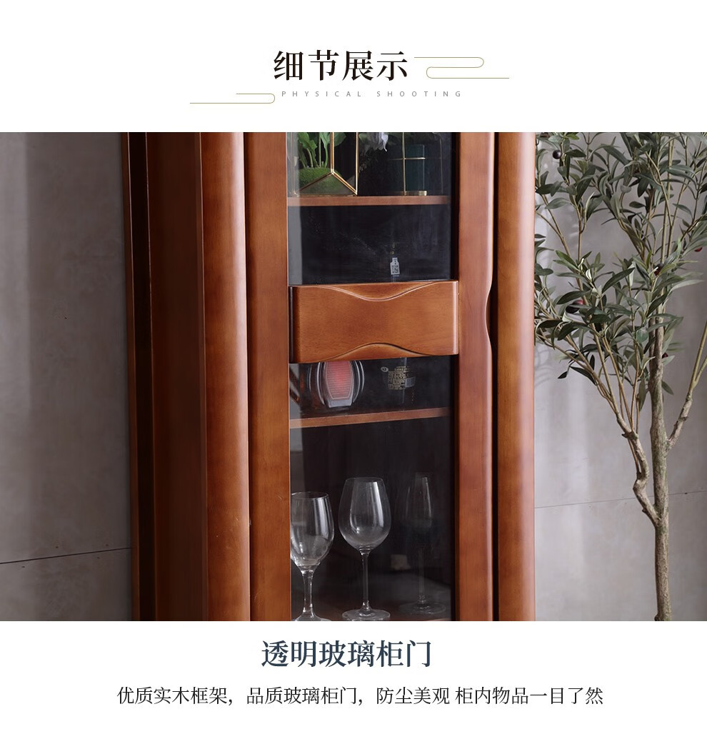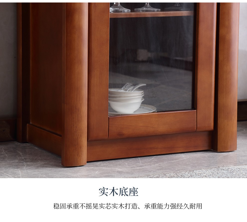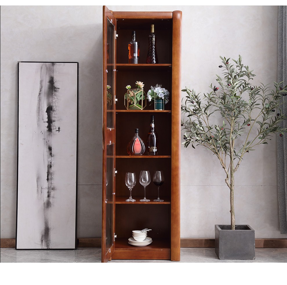 Chen Fei Furniture Chinese solid wood wine cabinet TV cabinet side cabinet single door narrow cabinet multi-functional glass small apartment living room storage cabinet walnut color