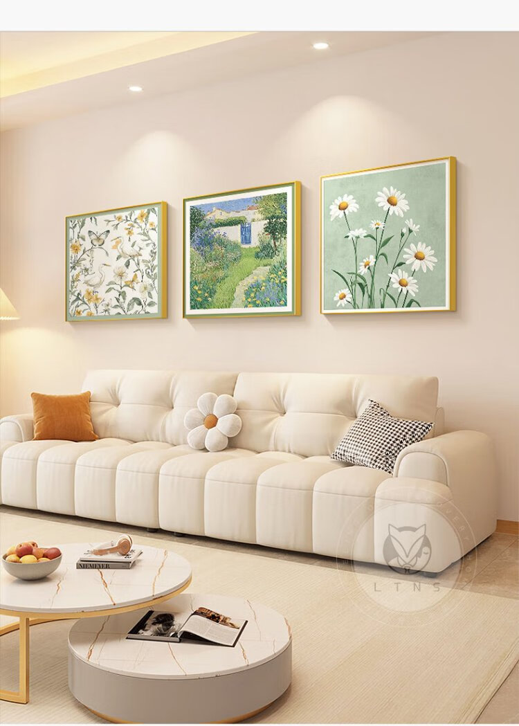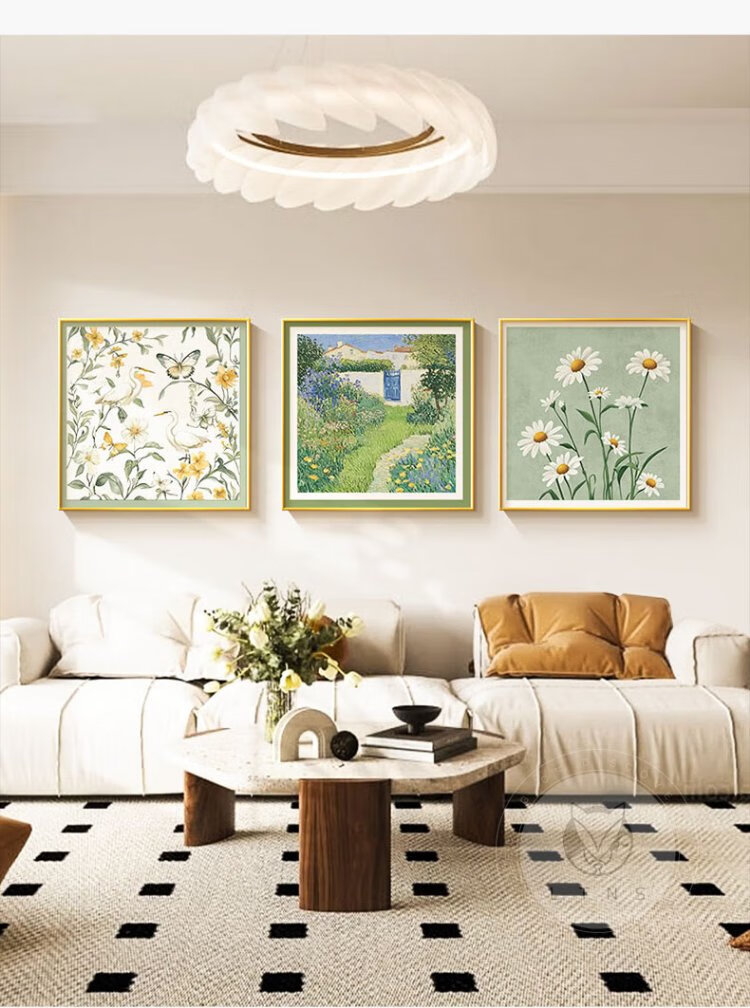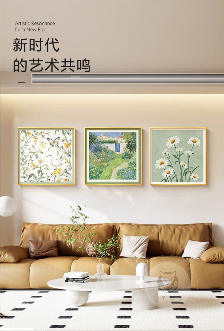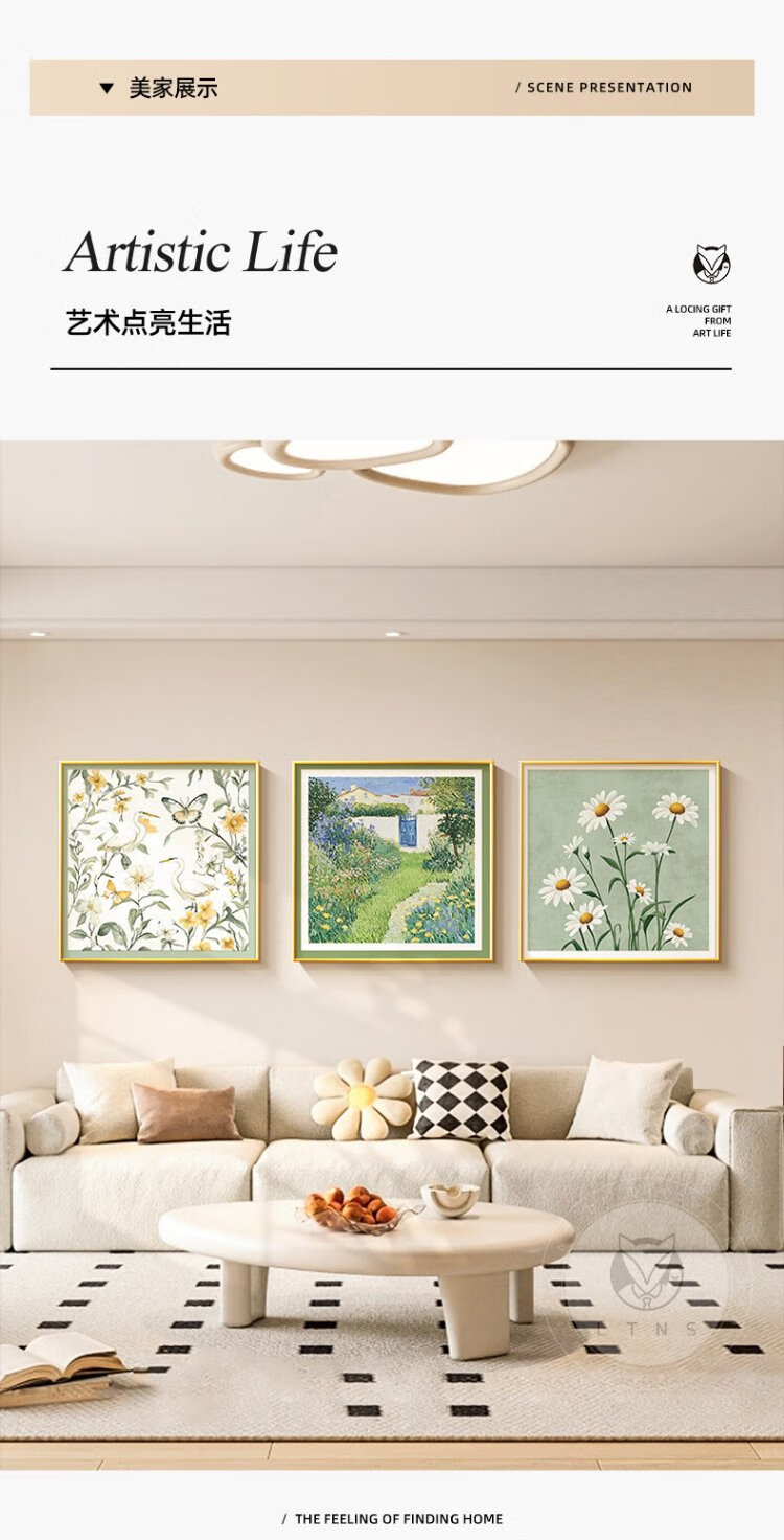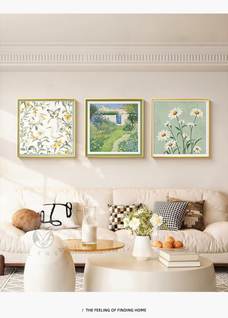Long time no see, cream style living room decoration painting, small fresh restaurant background wall hanging painting, art triptych combination mural