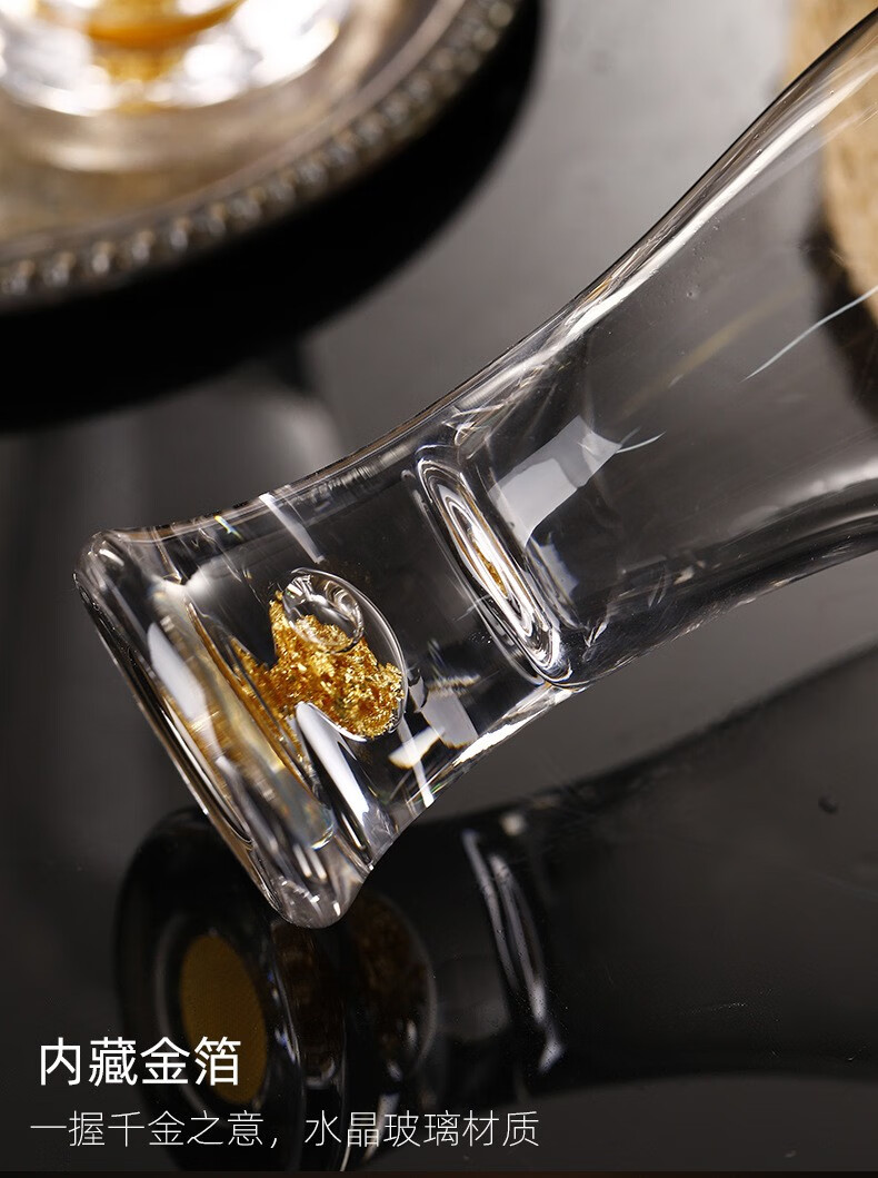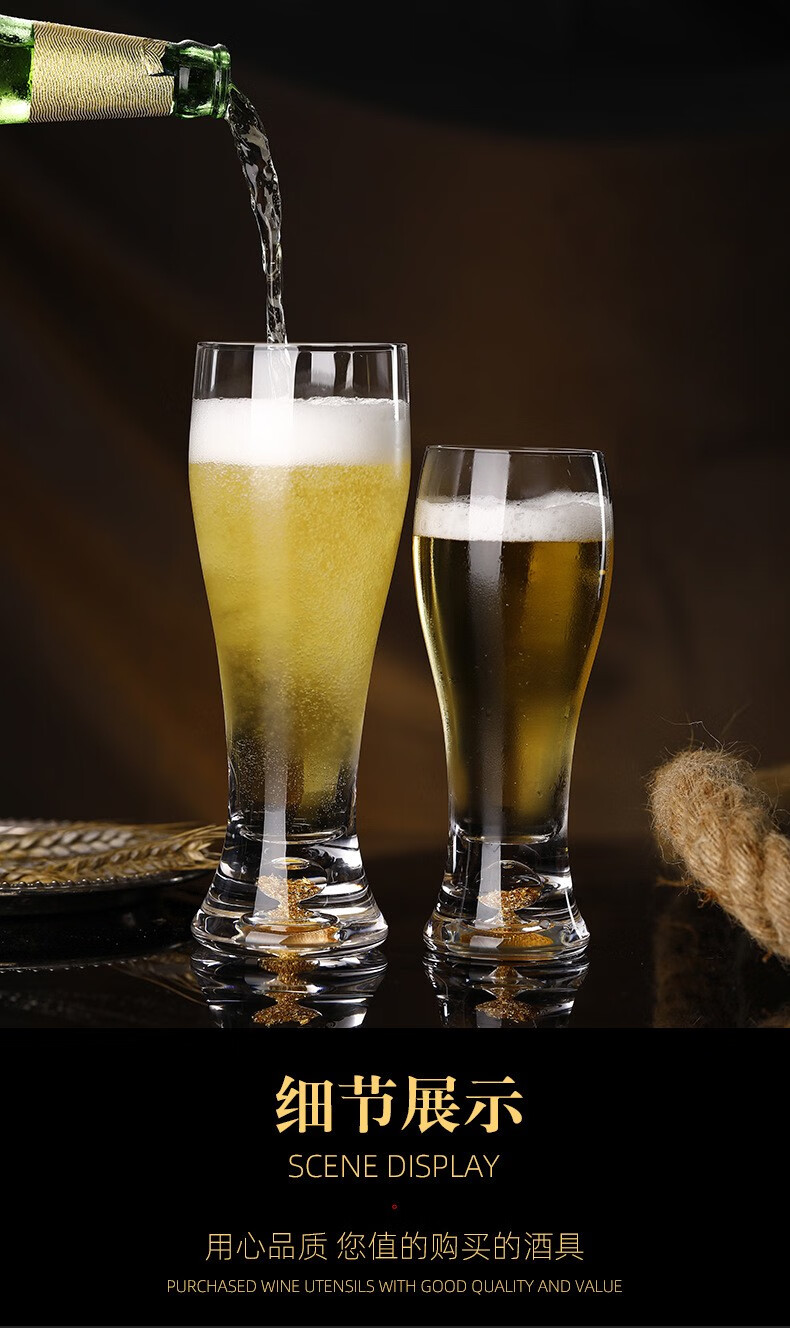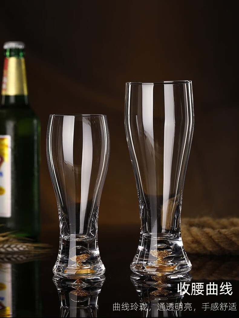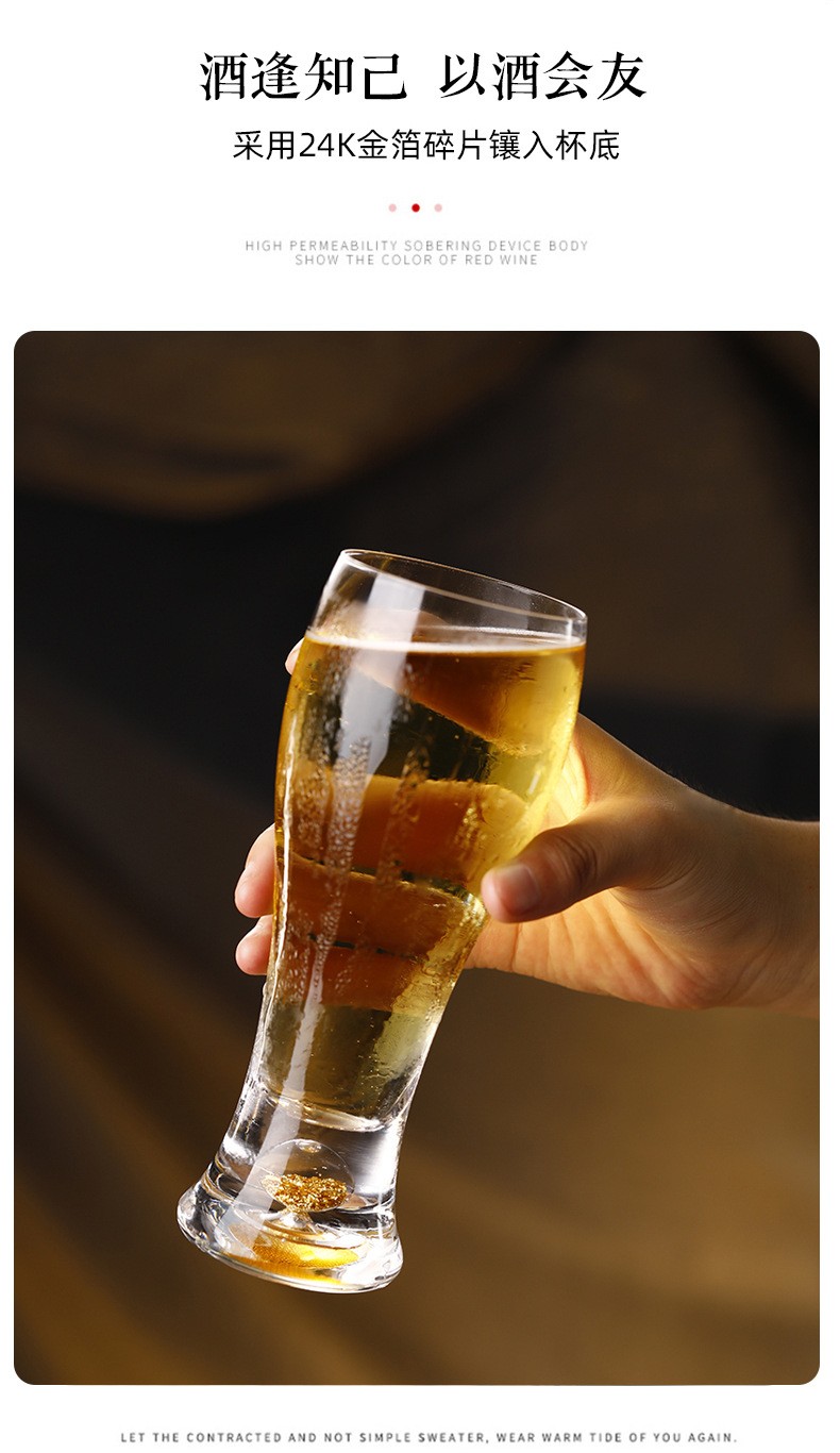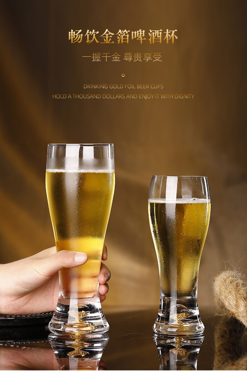 FANKAQI high-end beer mug crystal glass household draft beer mug daily large-capacity beer mug bamboo tray + gold foil beer mug 6 pieces 465ml