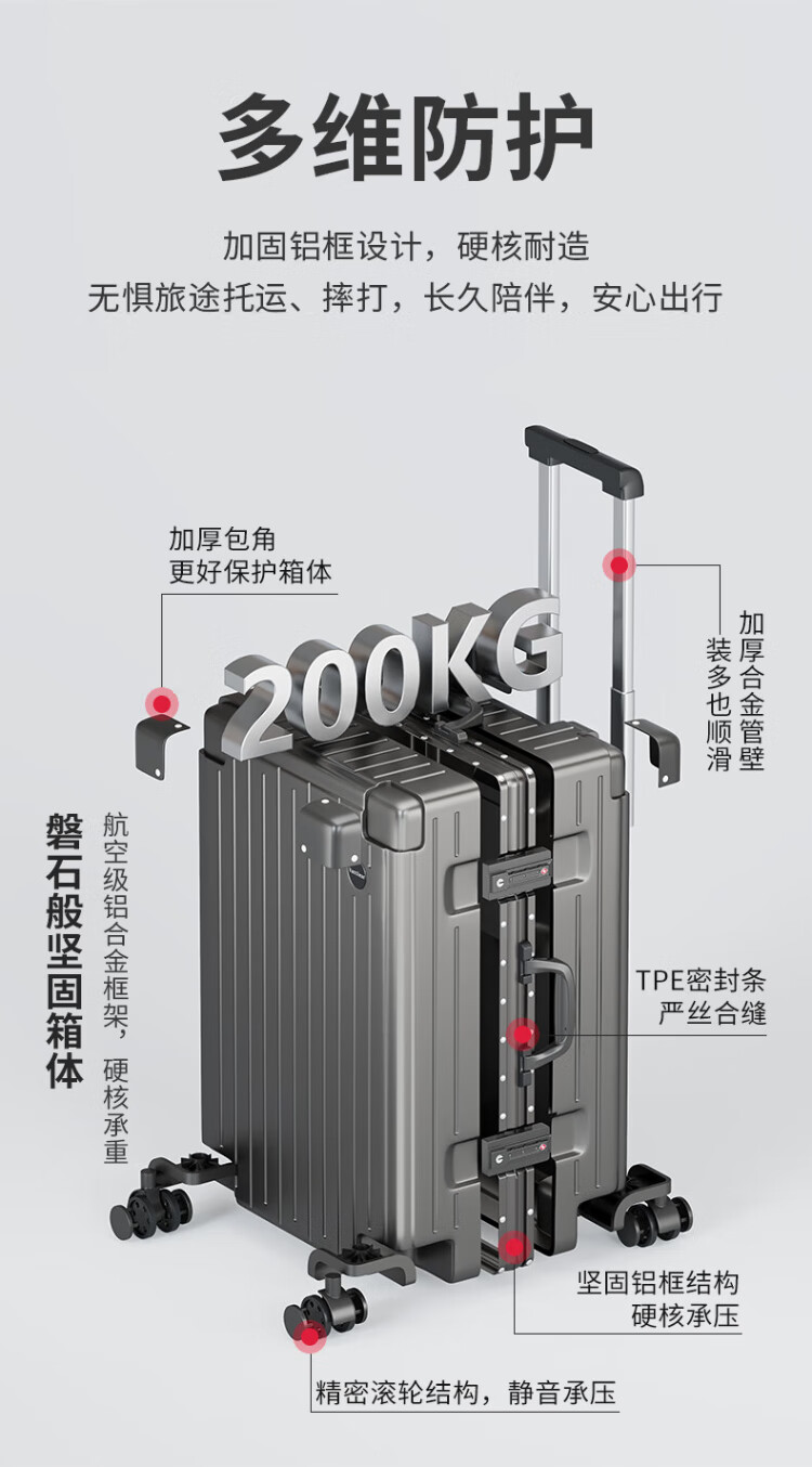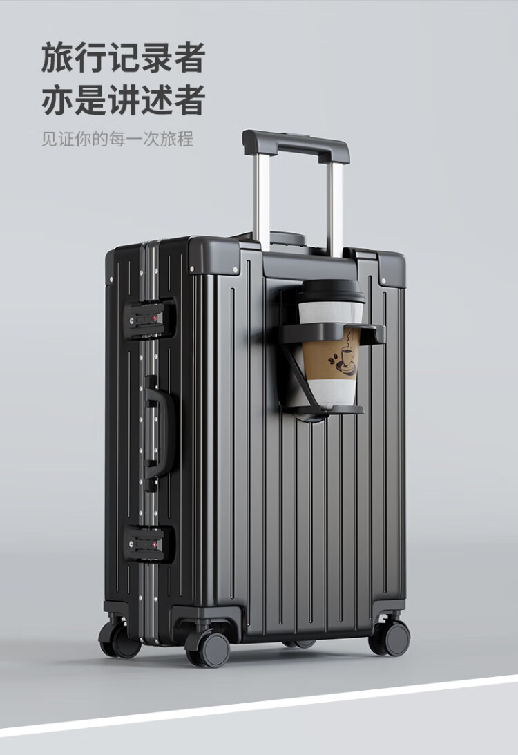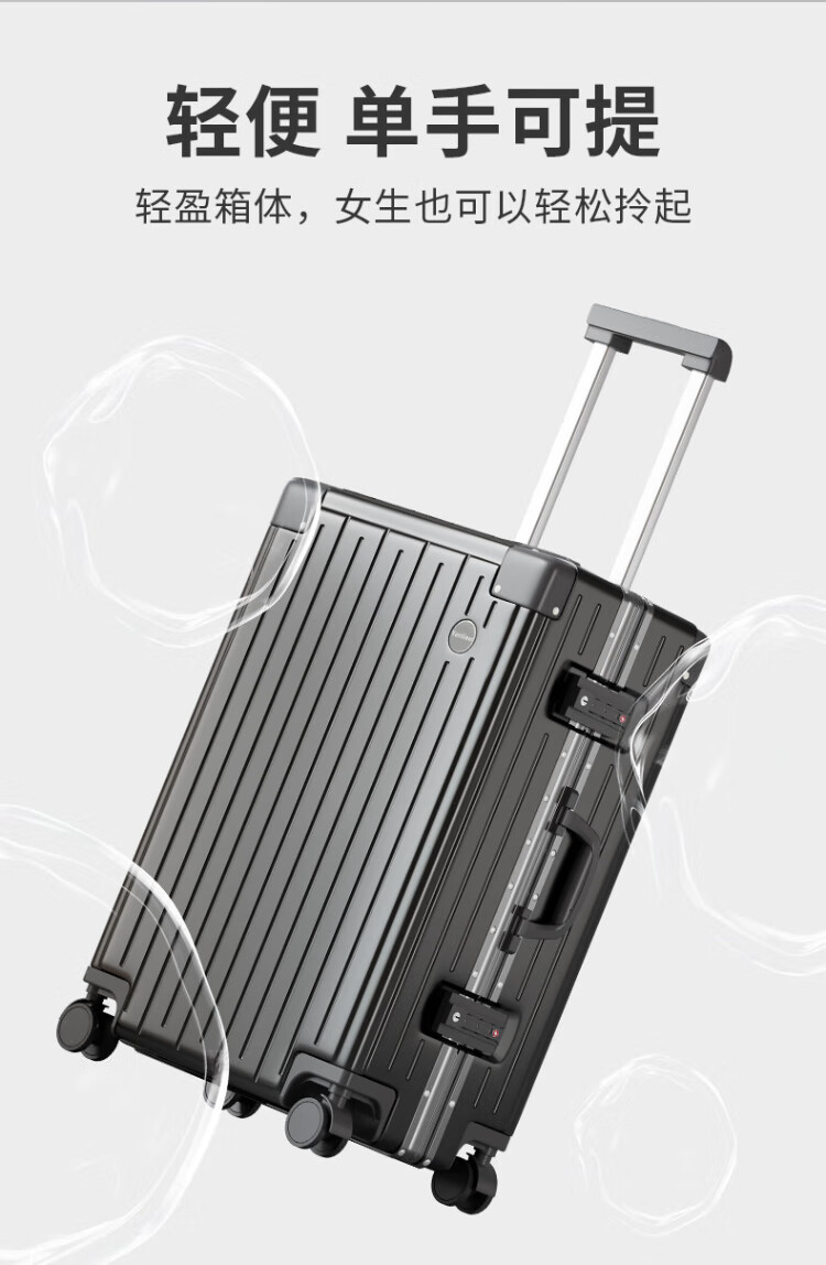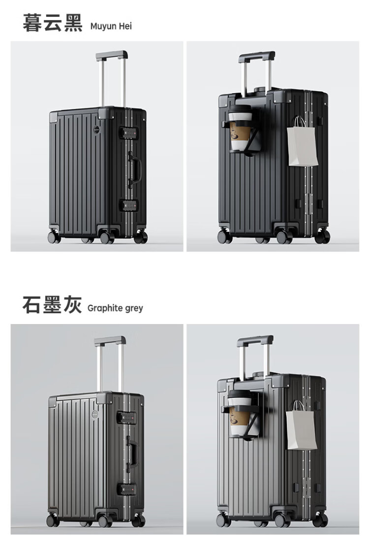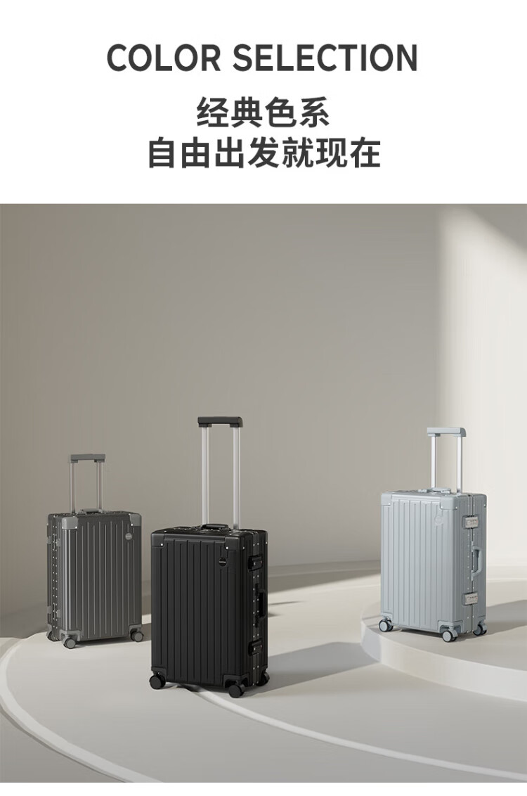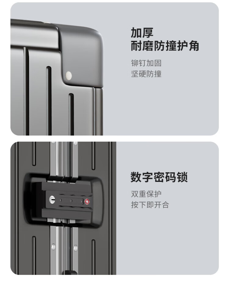 Fandia aluminum frame suitcase men's 26-inch trolley case large size aircraft suitcase aviation password box women's leather suitcase gray