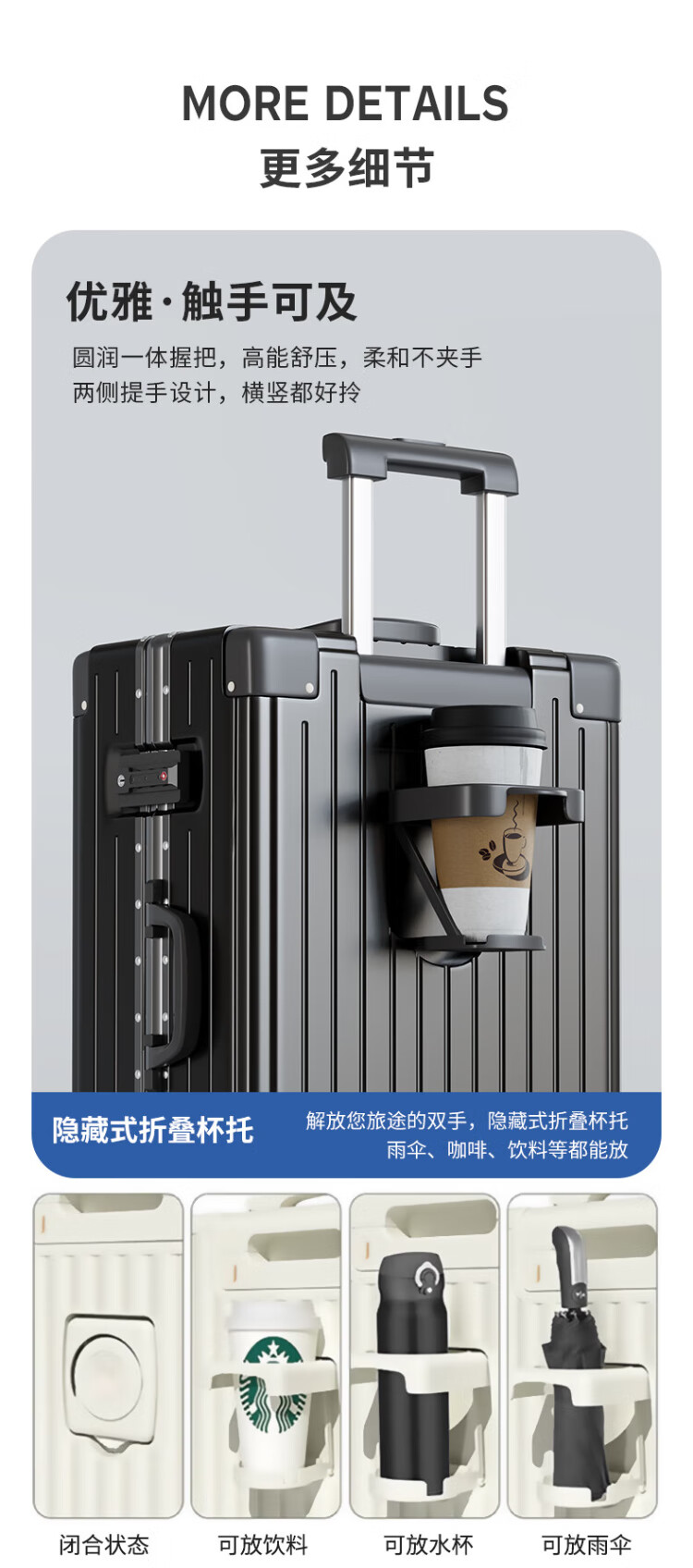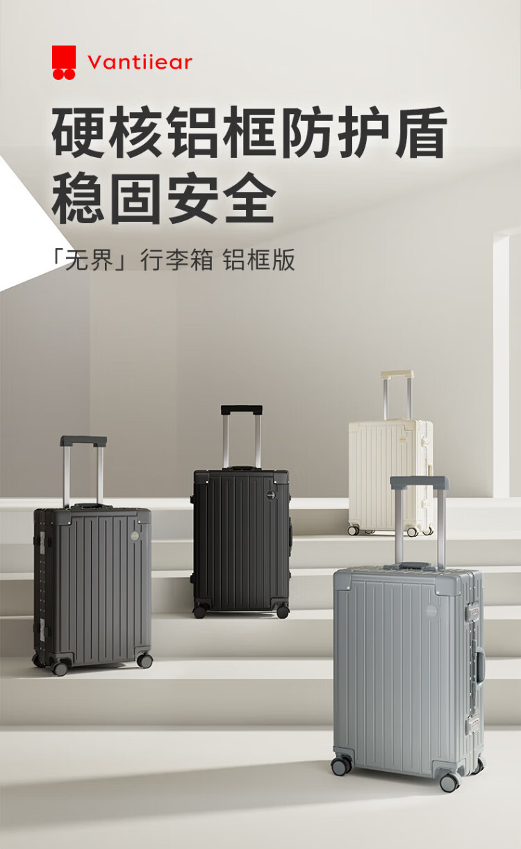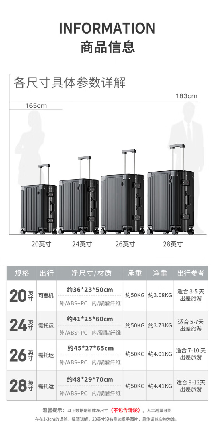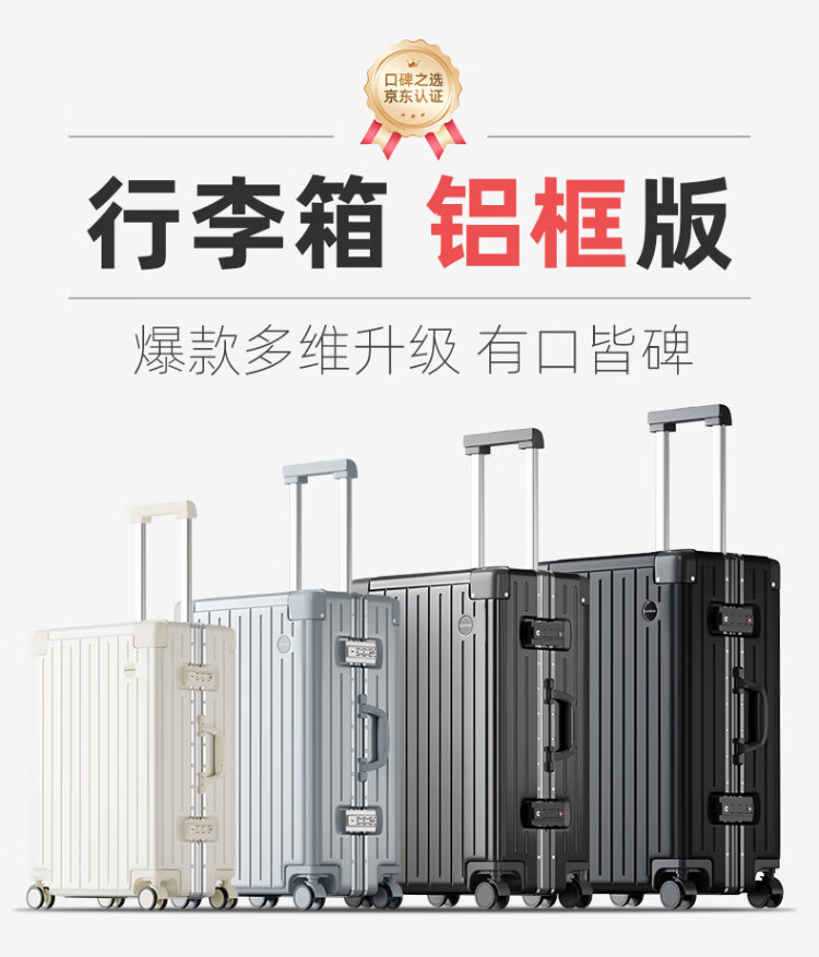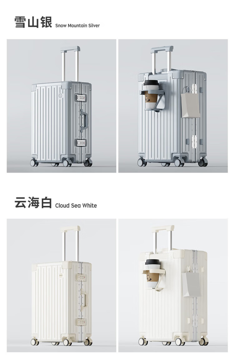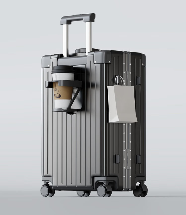 Fandia aluminum frame suitcase men's 26-inch trolley case large size aircraft suitcase aviation password box women's leather suitcase gray