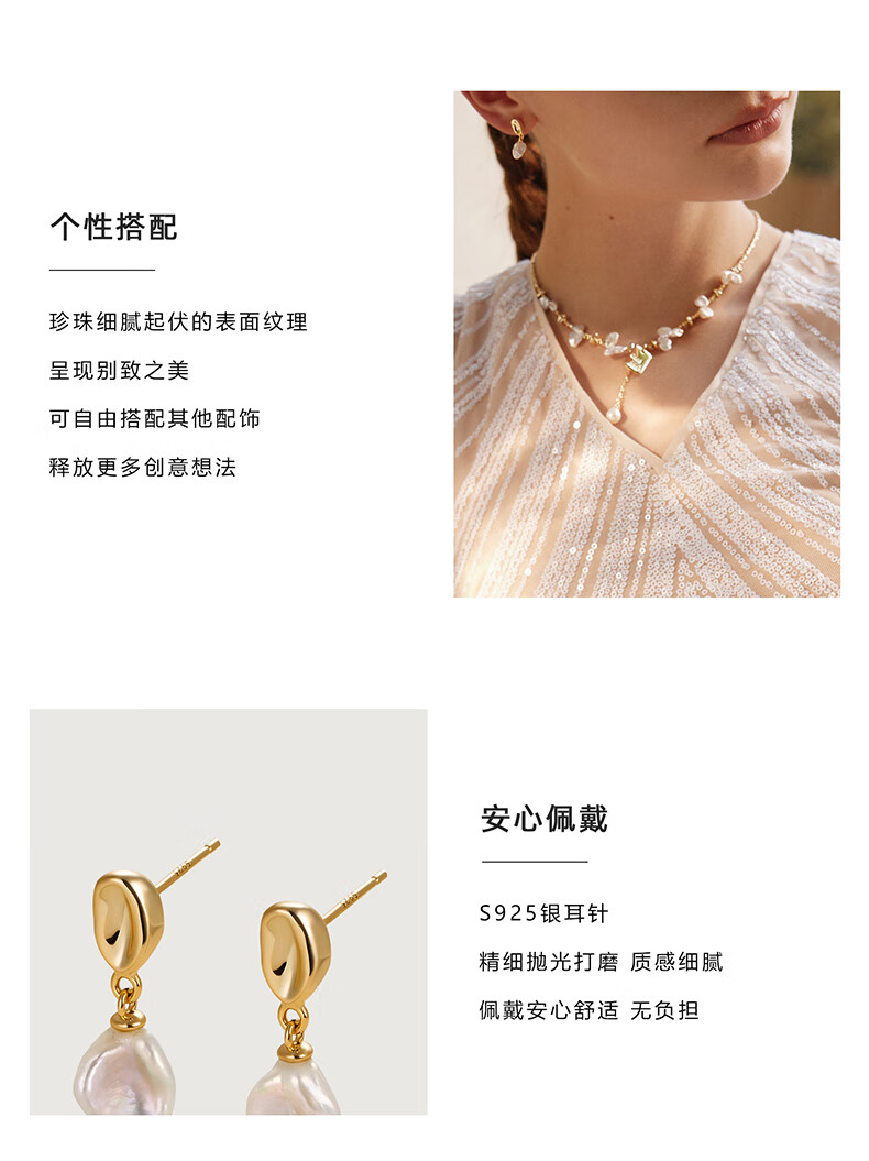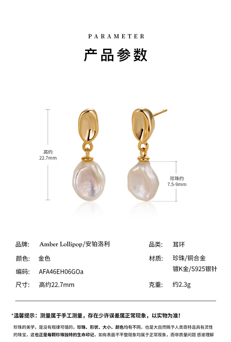 Amber Lollipop Wang Yuwen's same baroque pearl earrings women's earrings anniversary birthday gift for girlfriend and wife