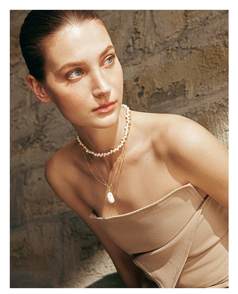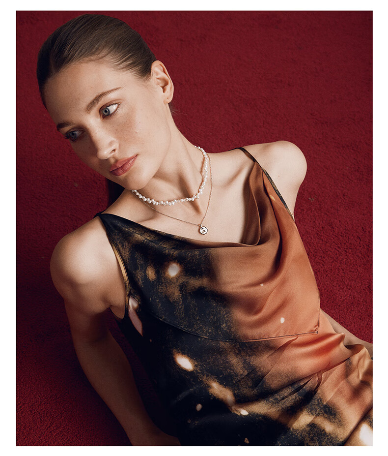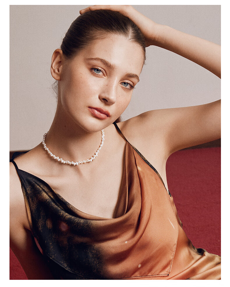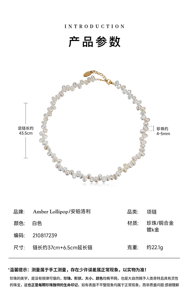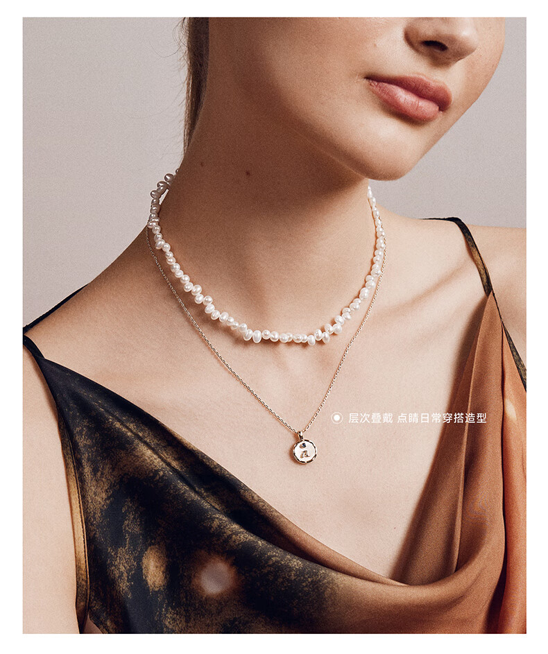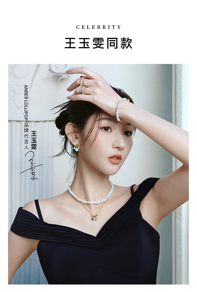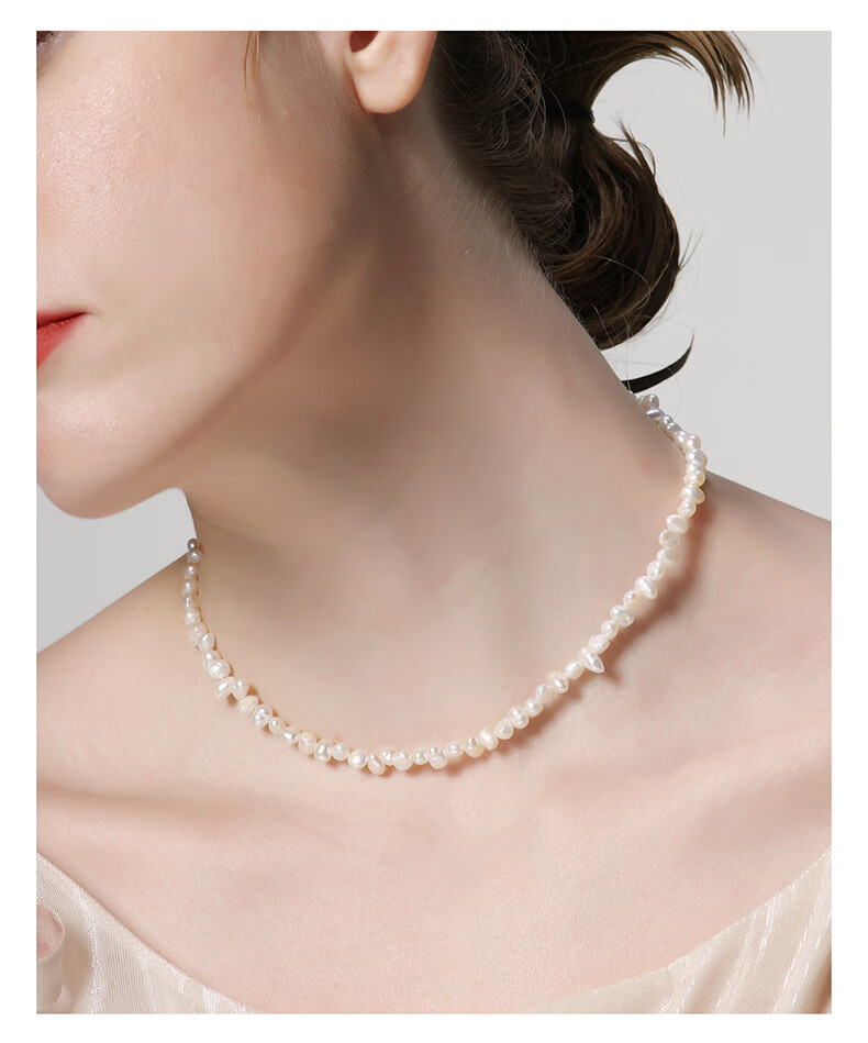 Amber Lollipop Wang Yuwen's same style pearl necklace ladies misaligned clavicle chain anniversary birthday gift for girlfriend and wife