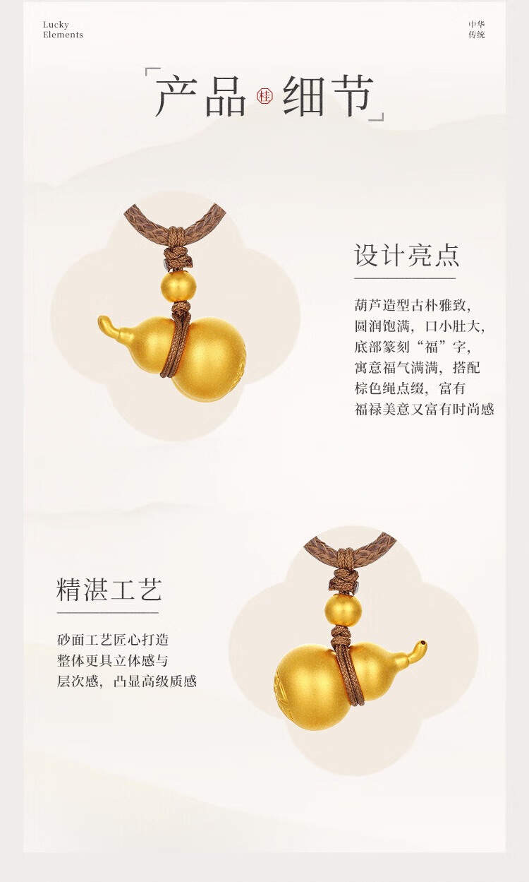 Liuguifu Jewelry Gold Pendant Fortune and Fortune 5D Hard Pure Gold Pendant Necklace Pendant FD0600652 1g