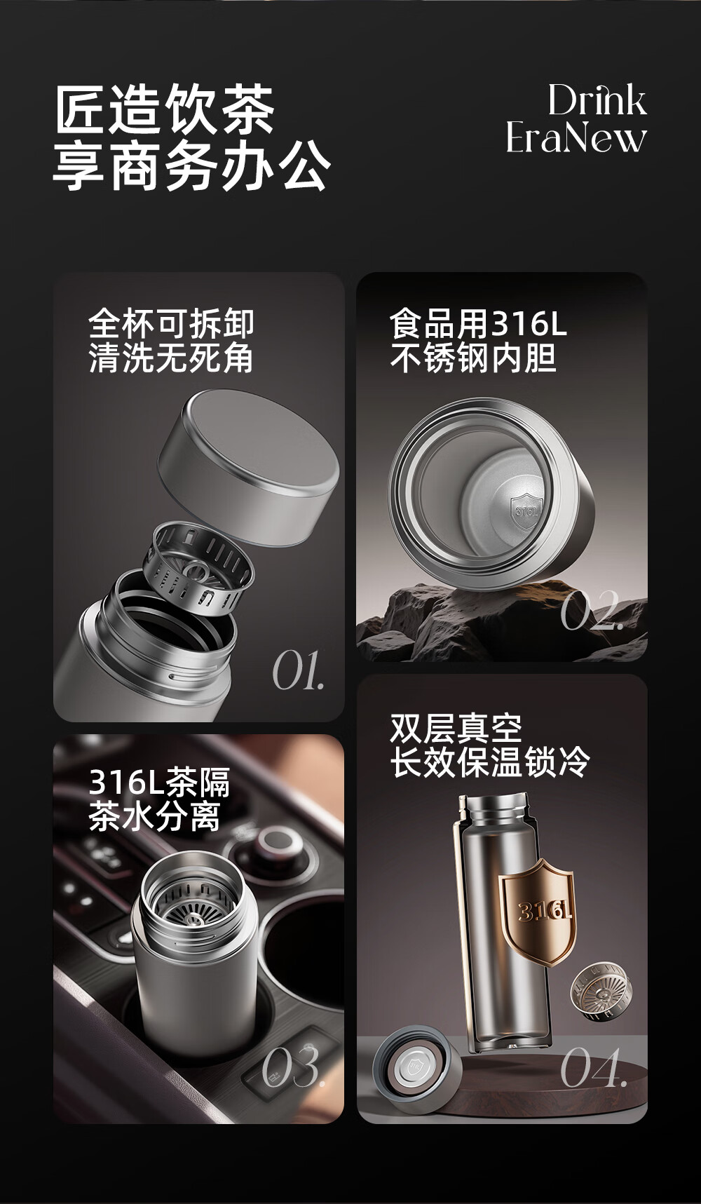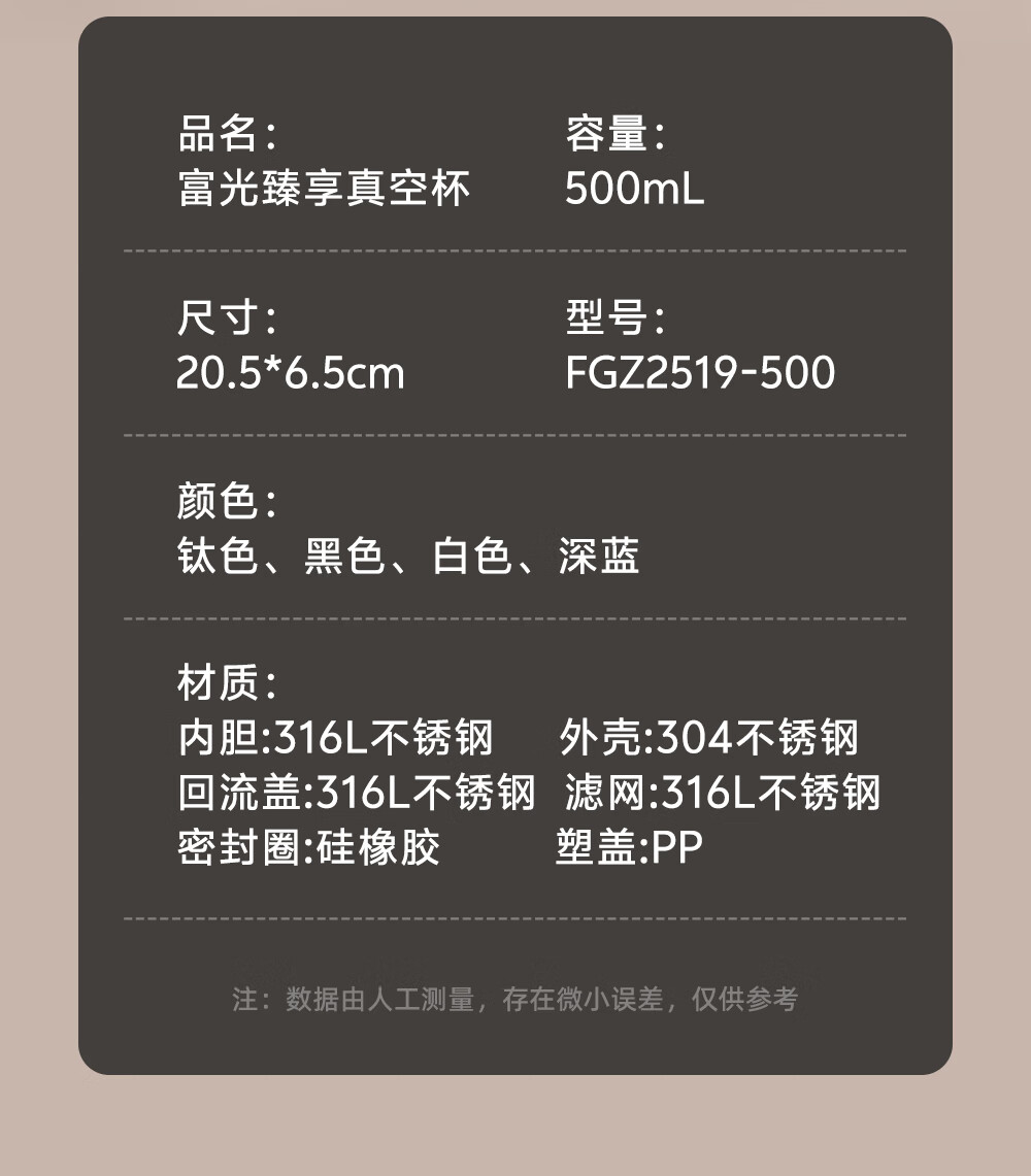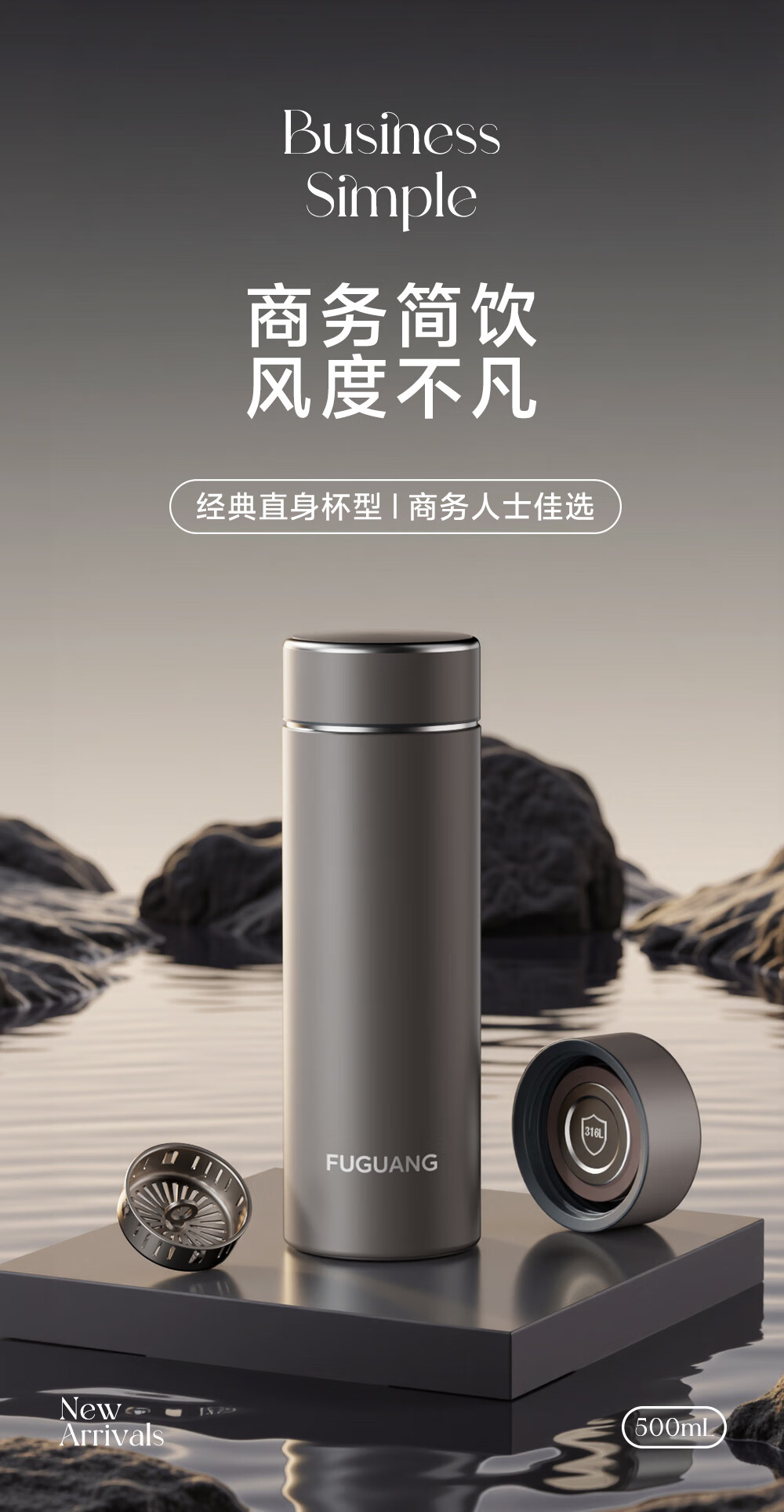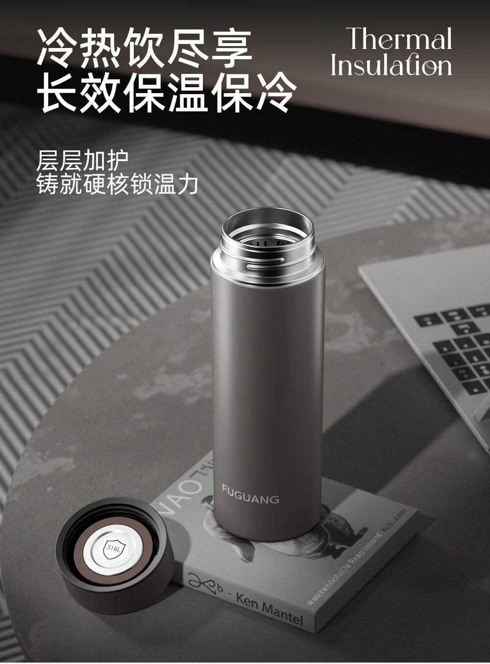 Fuguang thermos cup 316L stainless steel water cup business office tea cup men and women cold cup straight water cup