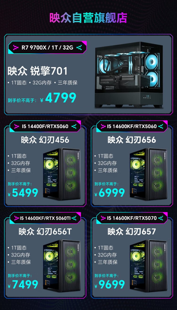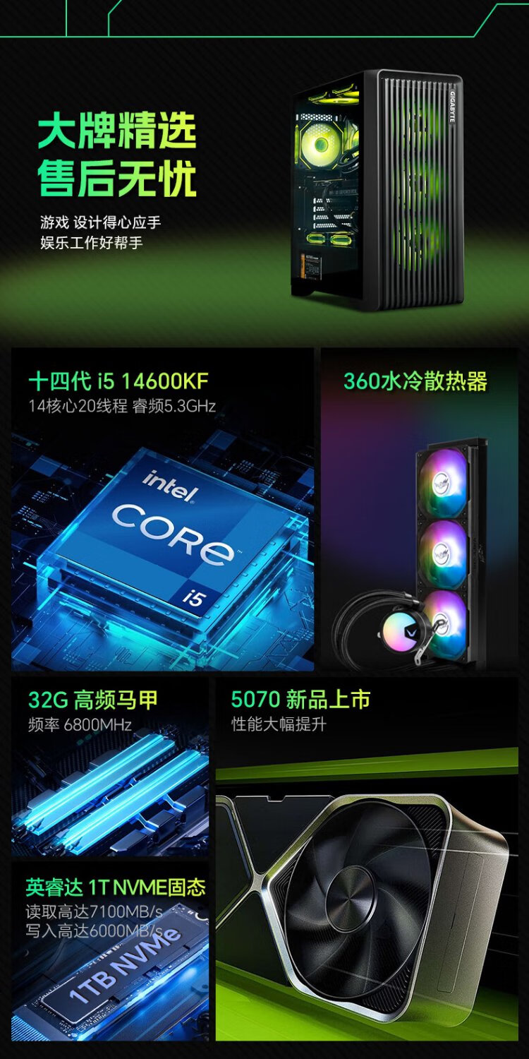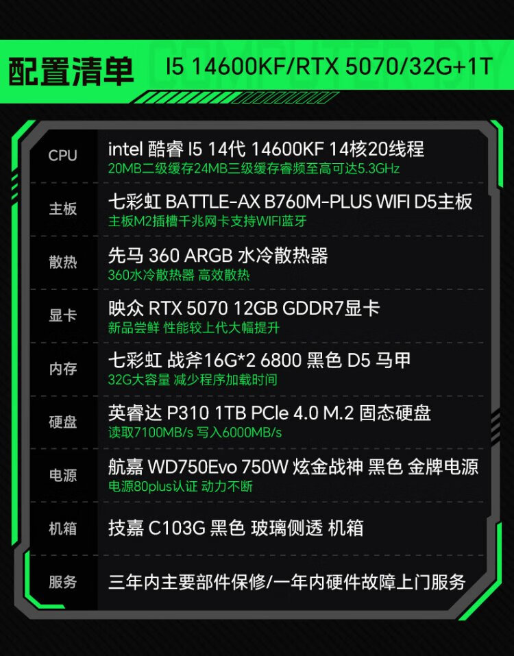 Yingzhong Magic Blade 657 i5 14600KF/RTX5070/32G/1TB solid-state desktop computer game desktop computer host complete set of national subsidy 20%