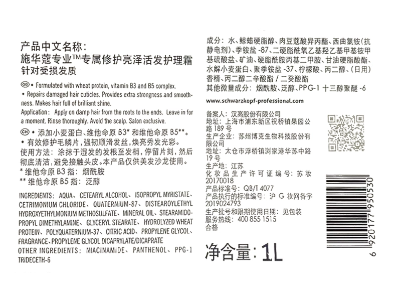 Schwarzkopf Professional Exclusive Repair Hair Mask No-Steam Smoothing Hair Mask 1000ml On Clearance