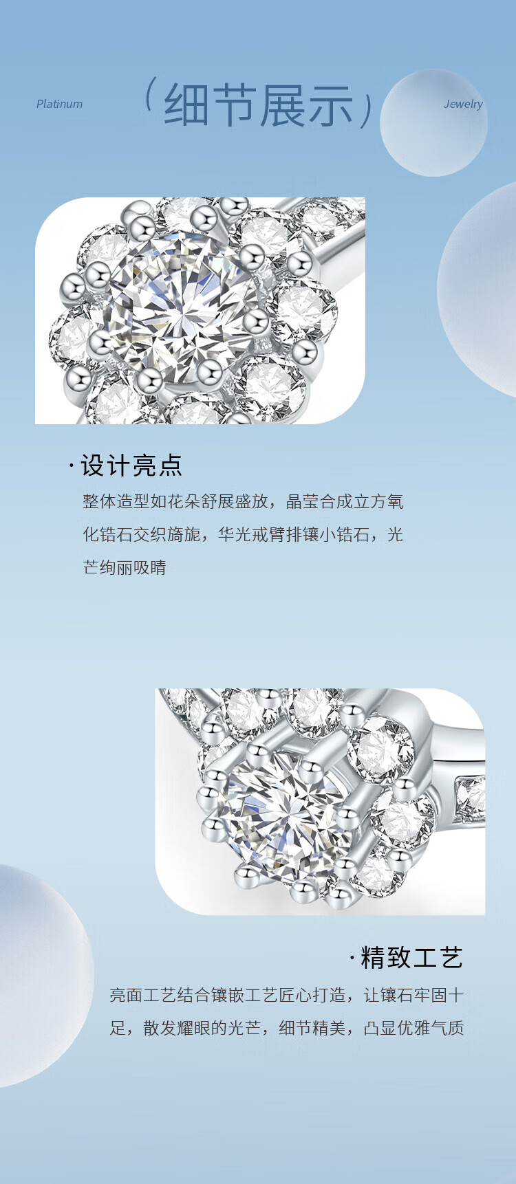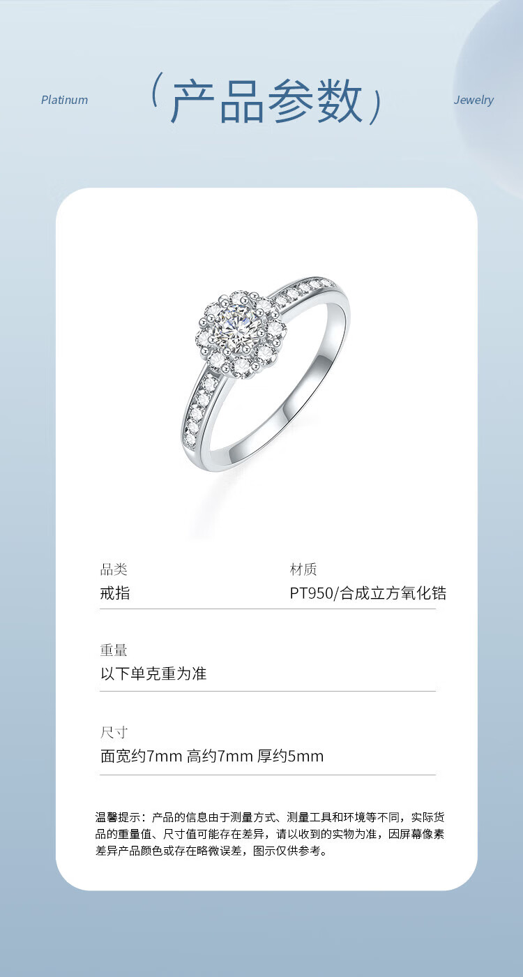 Liuguifu Jewelry Platinum Ring Bouquet PT950 Platinum Ring for Women PT0100121-11# 3.22g