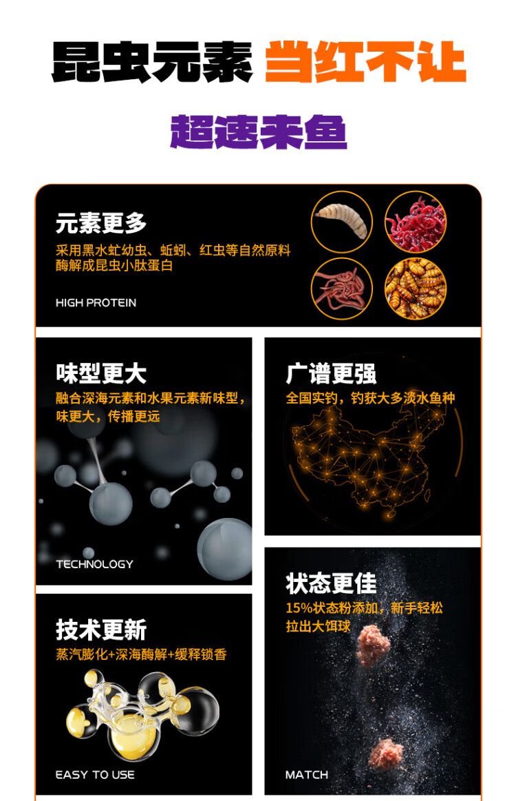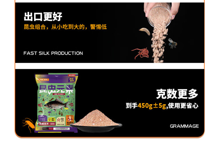 Yiyihuashi insect element large bag bait fish bait large-flavored high-penetration fishing insect element large bag-450g/pack