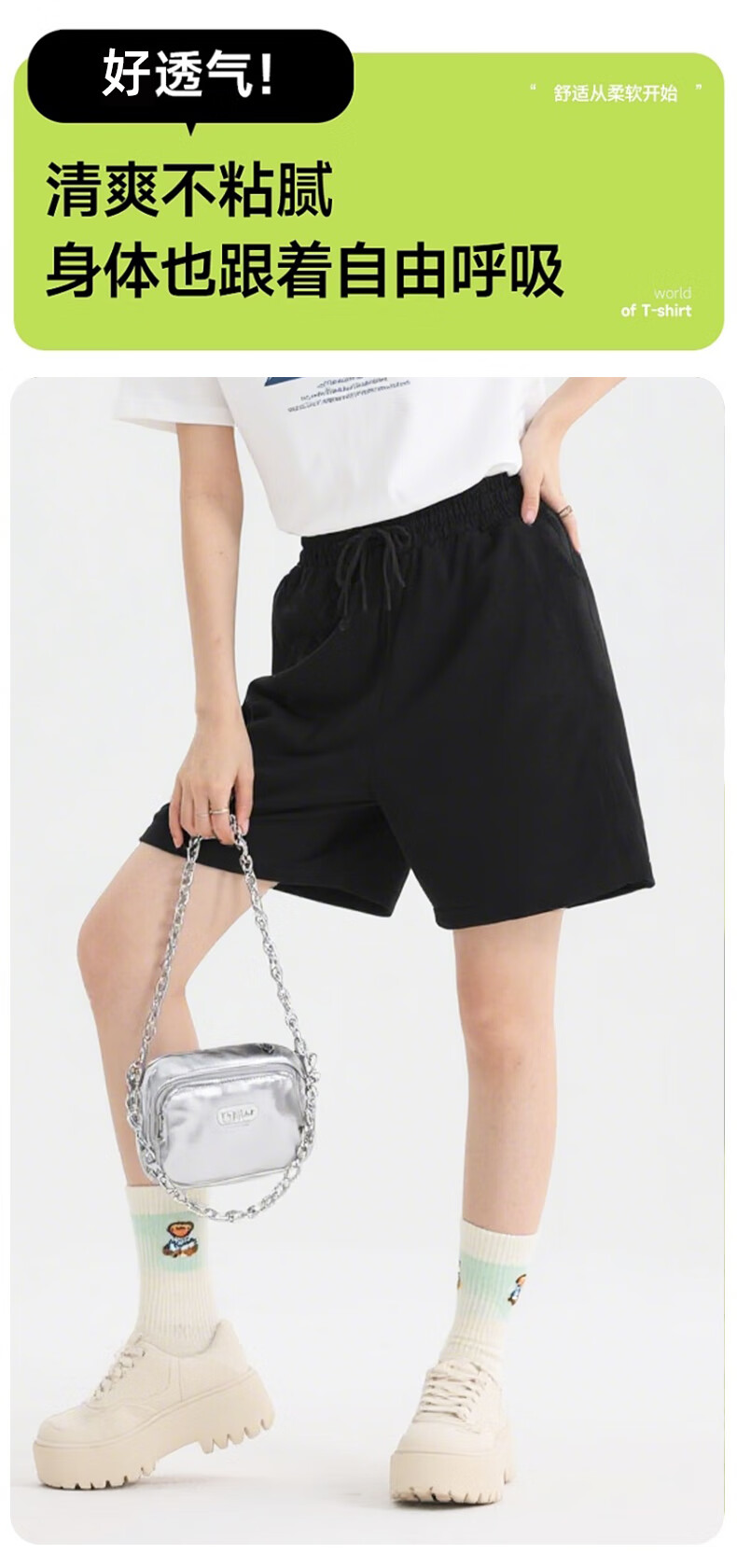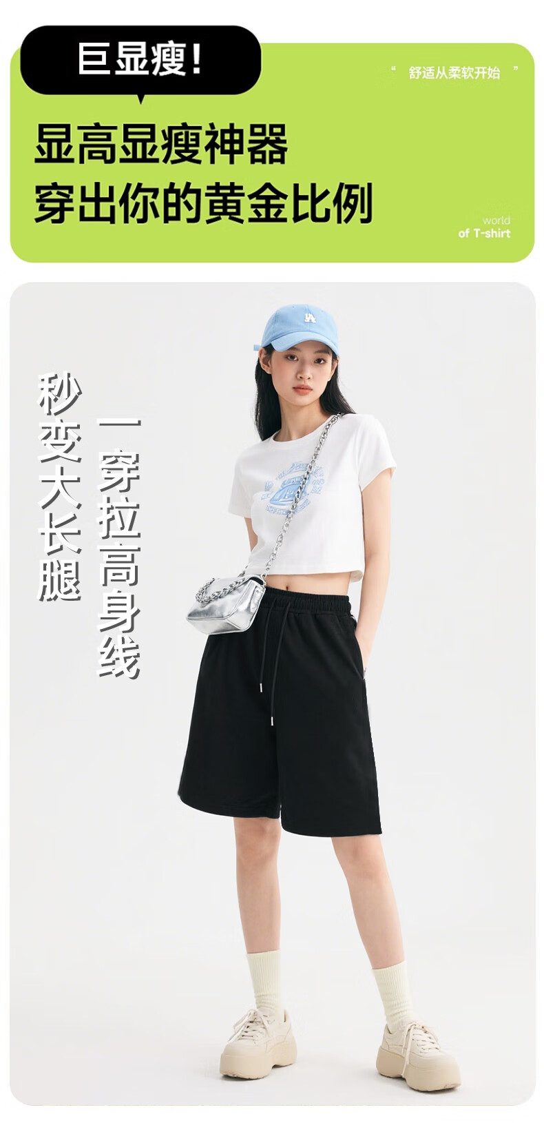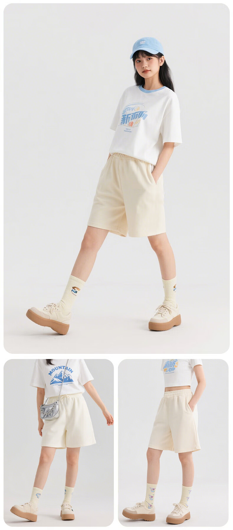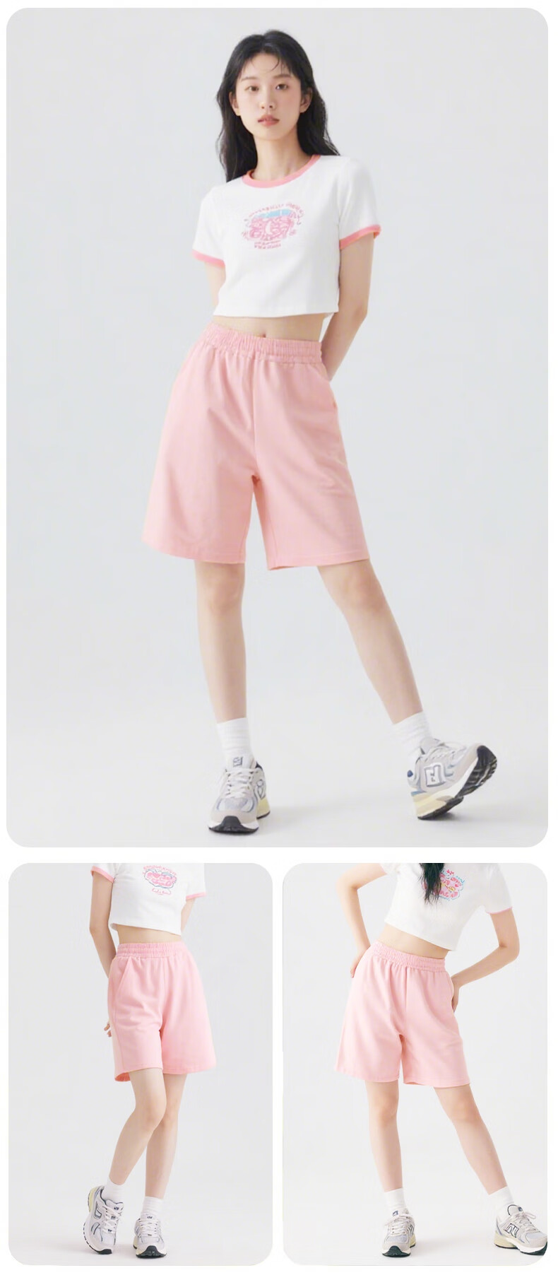 Baleno shorts for women summer new style pure cotton loose casual sports pants for women to wear elastic waist slim straight leg five-quarter pants