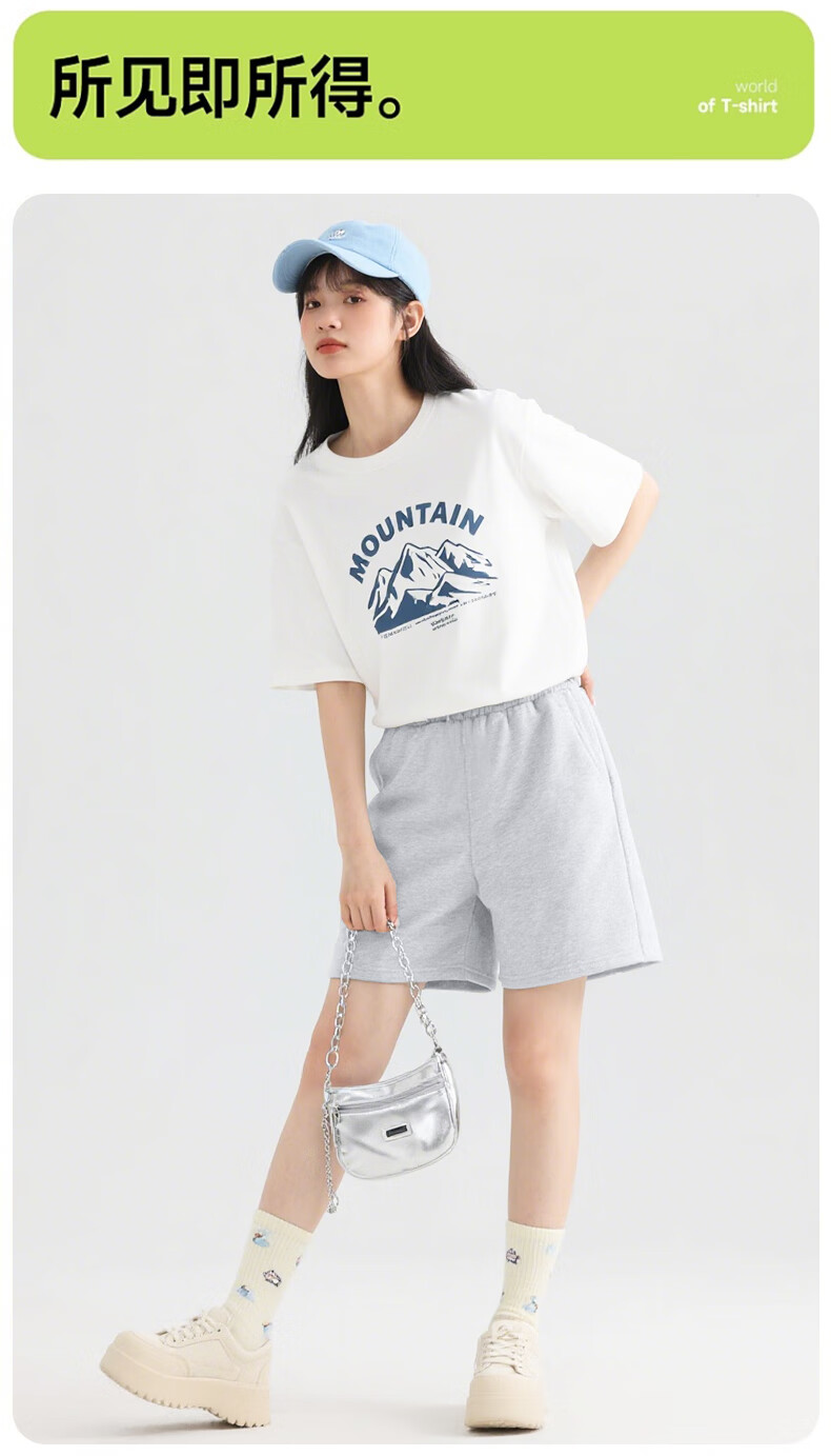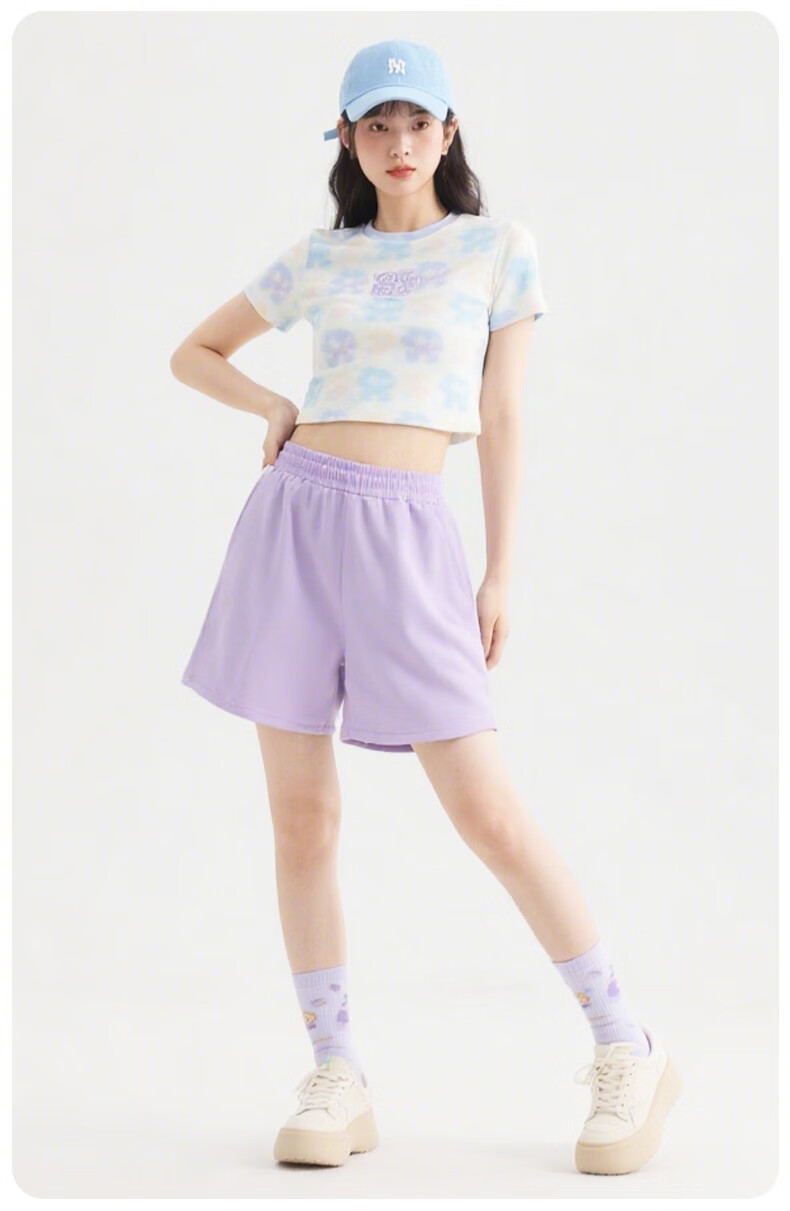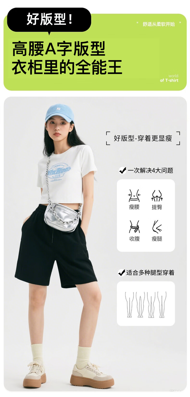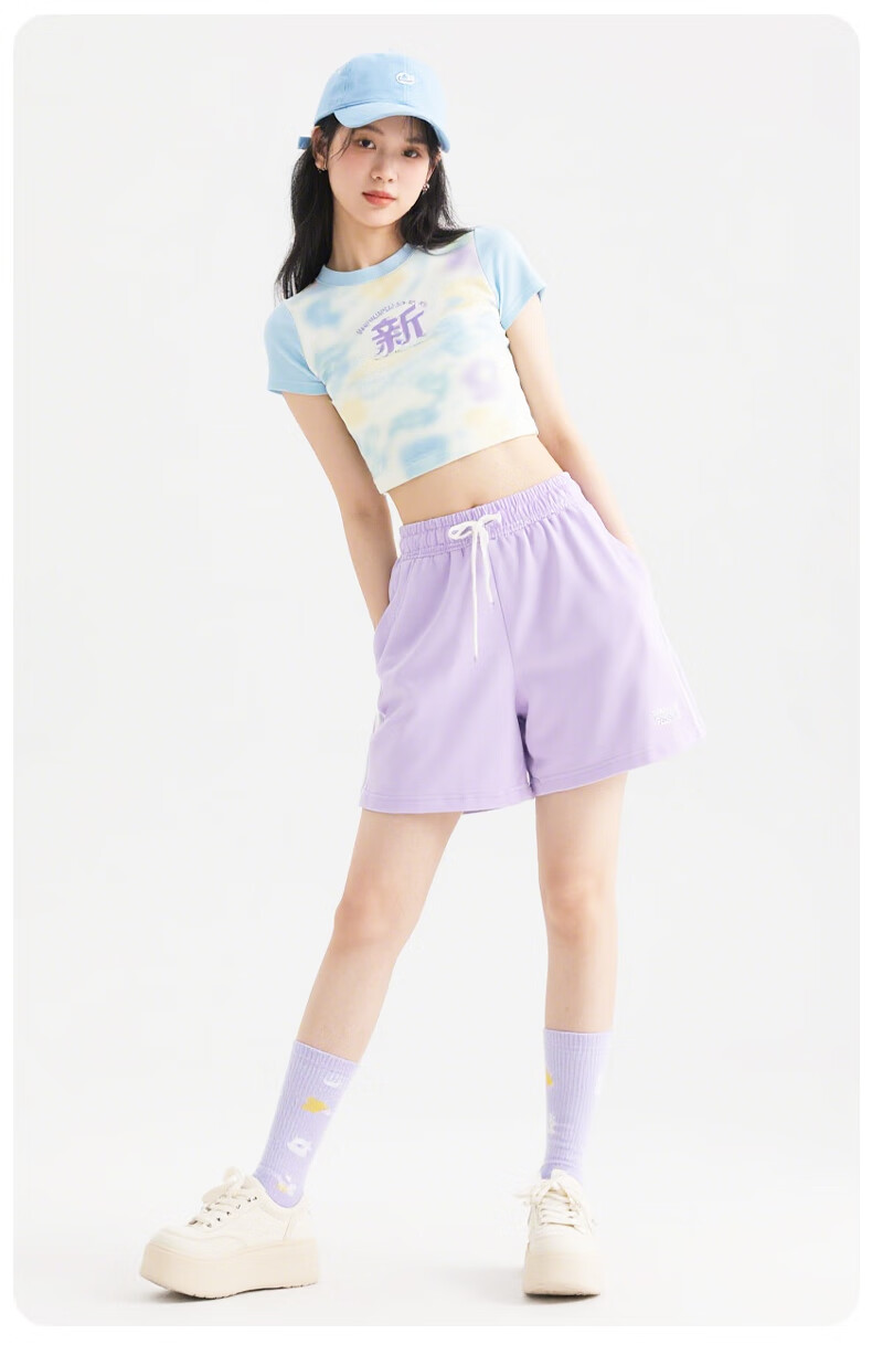 Baleno shorts for women summer new style pure cotton loose casual sports pants for women to wear elastic waist slim straight leg five-quarter pants