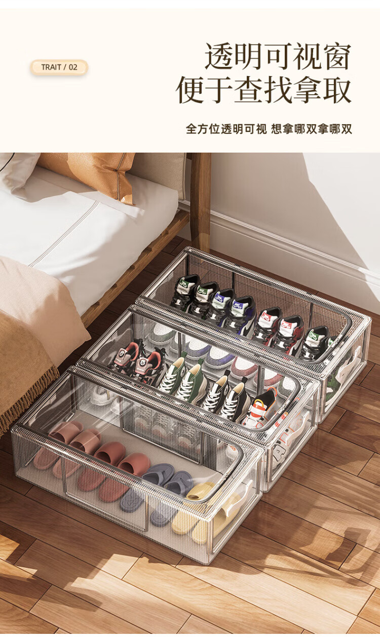 Jinlongxing shoe storage artifact space-saving transparent shoe support shoe cabinet box shoe box storage box folding transparent shoe rack under the bed