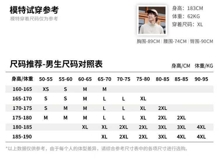 China (cm) 165 / 88-90 170 / 96-98 175 / 108-110 180 / 118-122 185 / 126-130